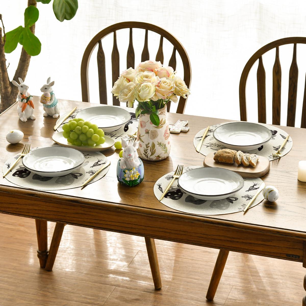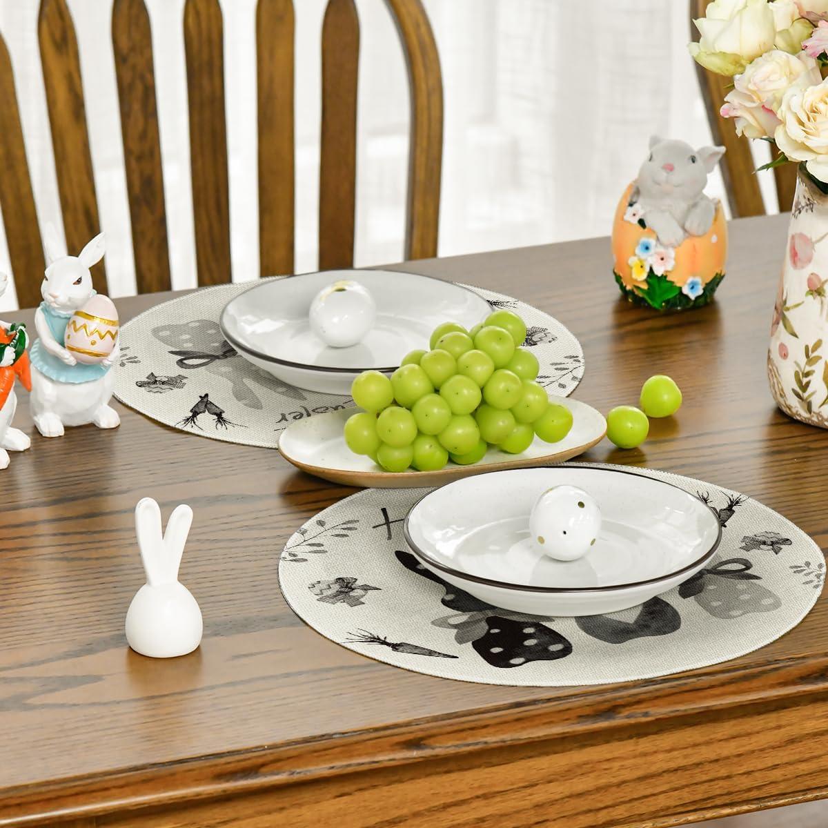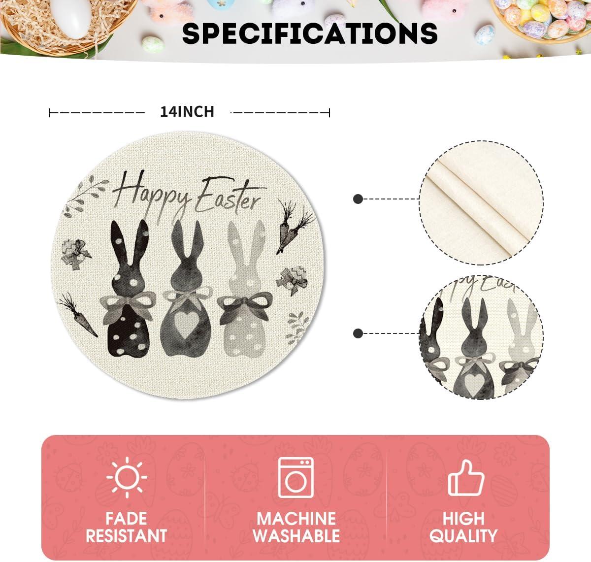 Artoid Mode Carrots Rabbit Bunny Happy Easter Round Placemats Set of 4, 15 Inch Spring Round Table Mats for Dining Decoration(Black)