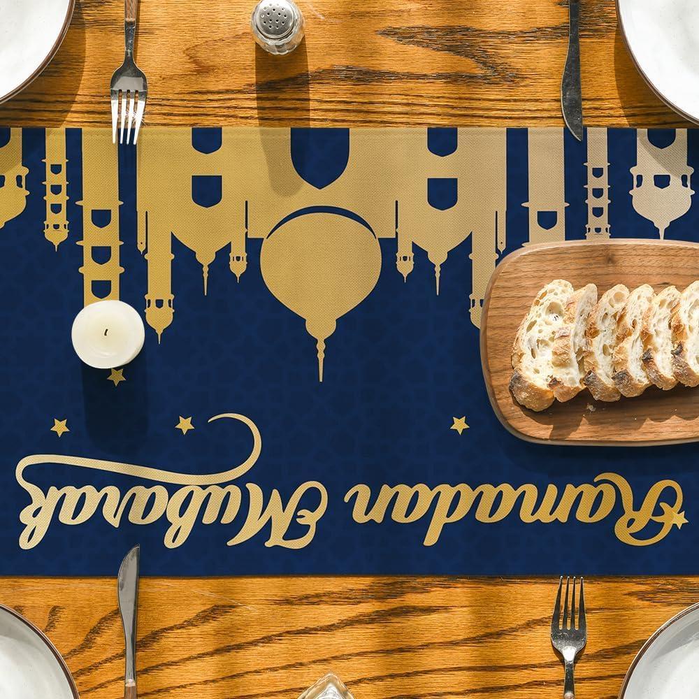 Artoid Mode Castle Lantern Moon Ramadan Table Runner, Seasonal Kitchen Dining Table Decoration for Home Party Decor 13×72 Inch