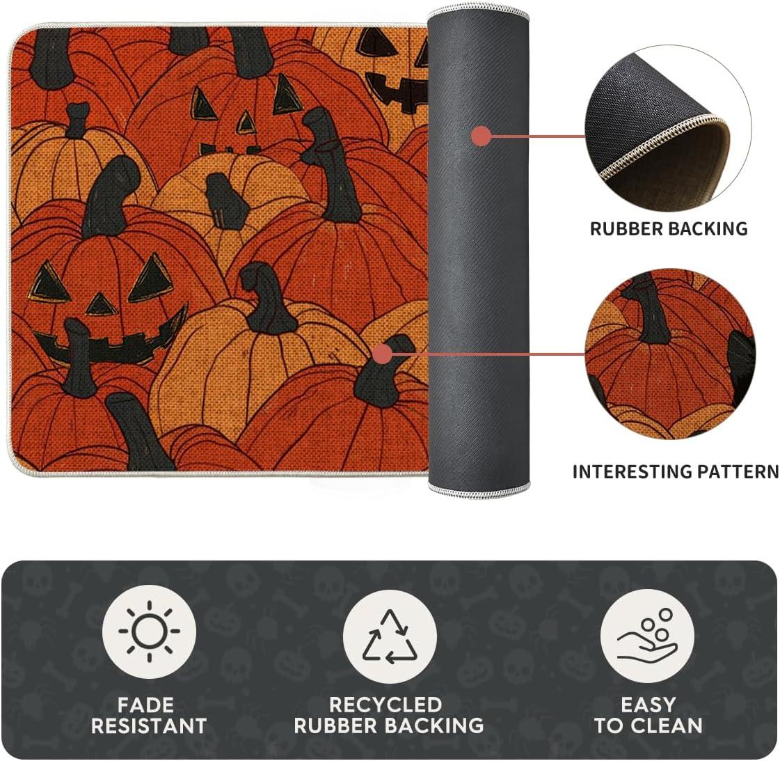 Artoid Mode Cat Jack-O’-Lantern Pumpkin Halloween Kitchen Mats Set of 2, Low-Profile Home Decor Kitchen Rugs for Floor – 17×29 and 17×47 Inch