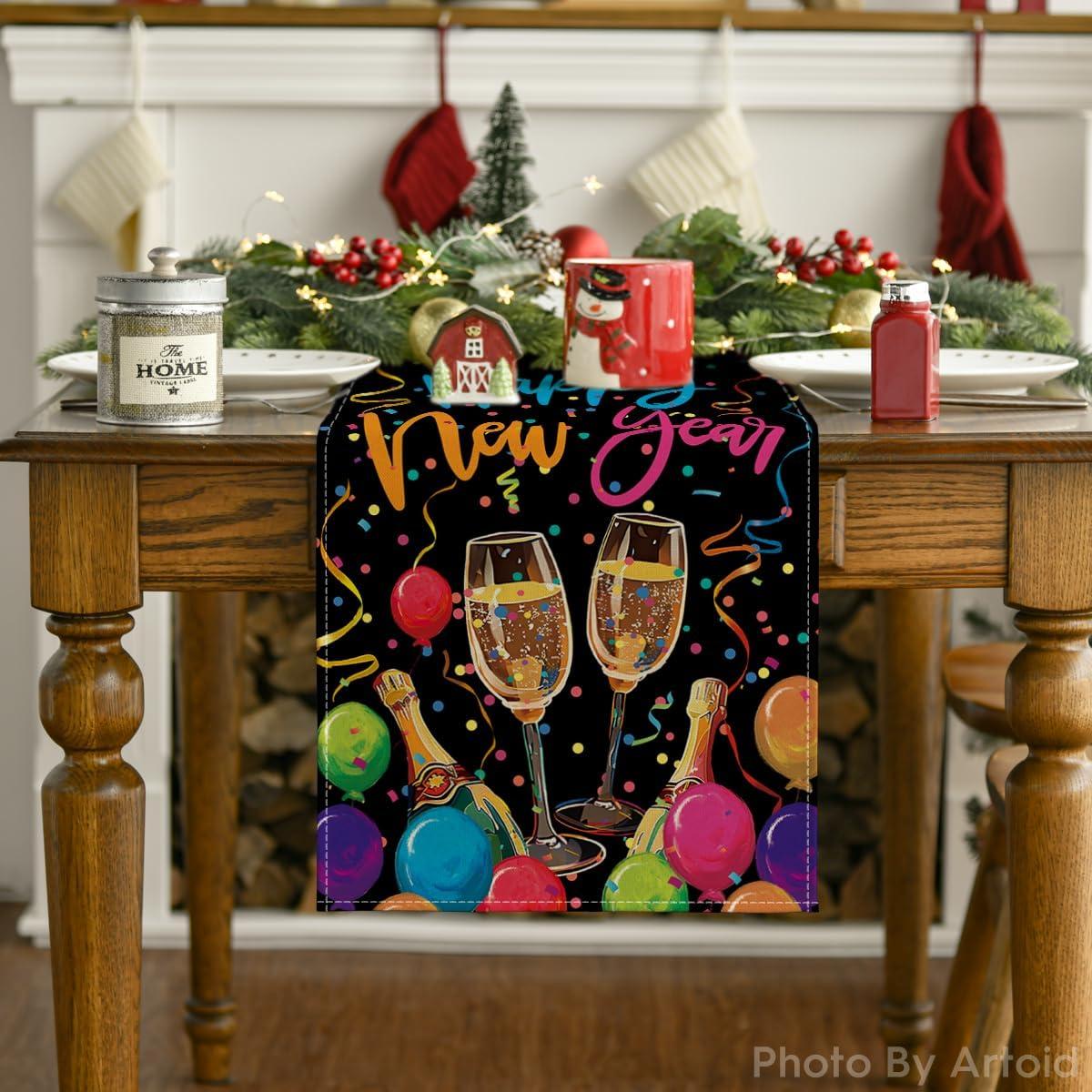 Artoid Mode Cheers Balloon Streamers 2026 Happy New Year Table Runner, Festival Kitchen Dining Table Decoration for Home Party Decor 13×72 Inch