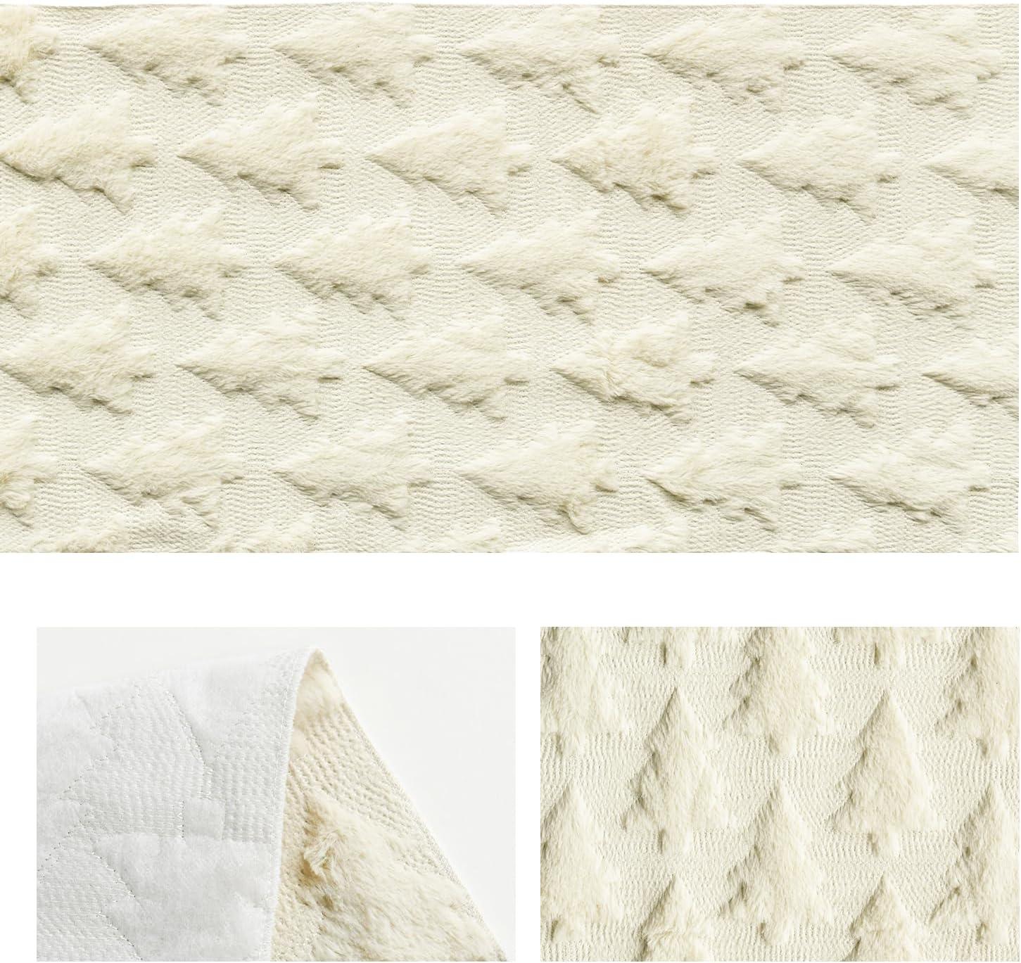 Artoid Mode Christmas Trees Green Soft Plush Faux Fur Jacquard Christmas Table Runner, Holiday Kitchen Dining Table Decoration for Home Party Decor 13×72 Inch(Beige)
