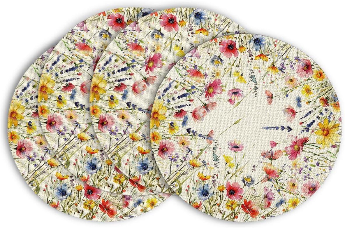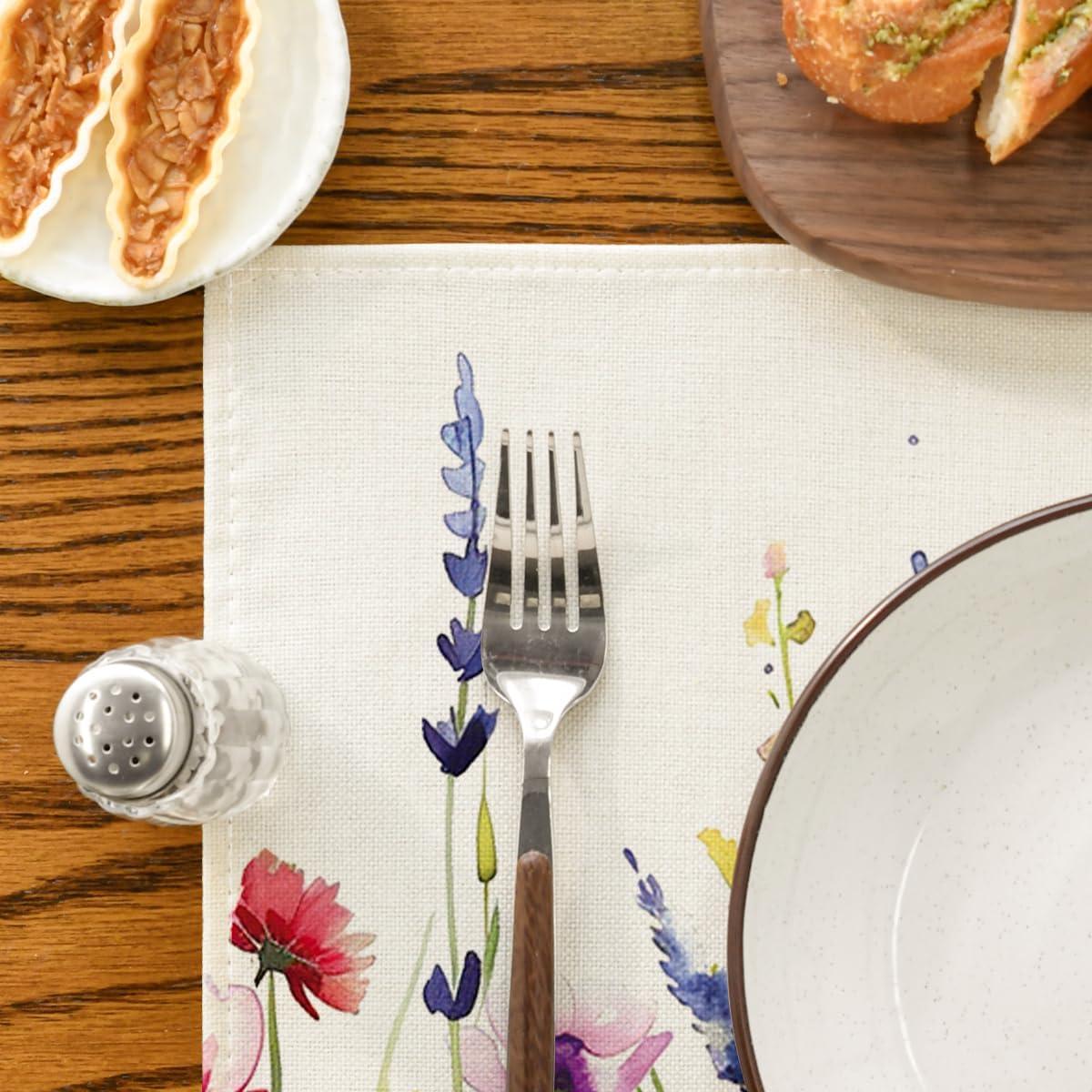 Artoid Mode Daisy Lavender Floral Leaves Spring Placemats Set of 4,12×18 Inch Seasonal Spring Table Mats for Party Kitchen Dining Decoration(Beige)