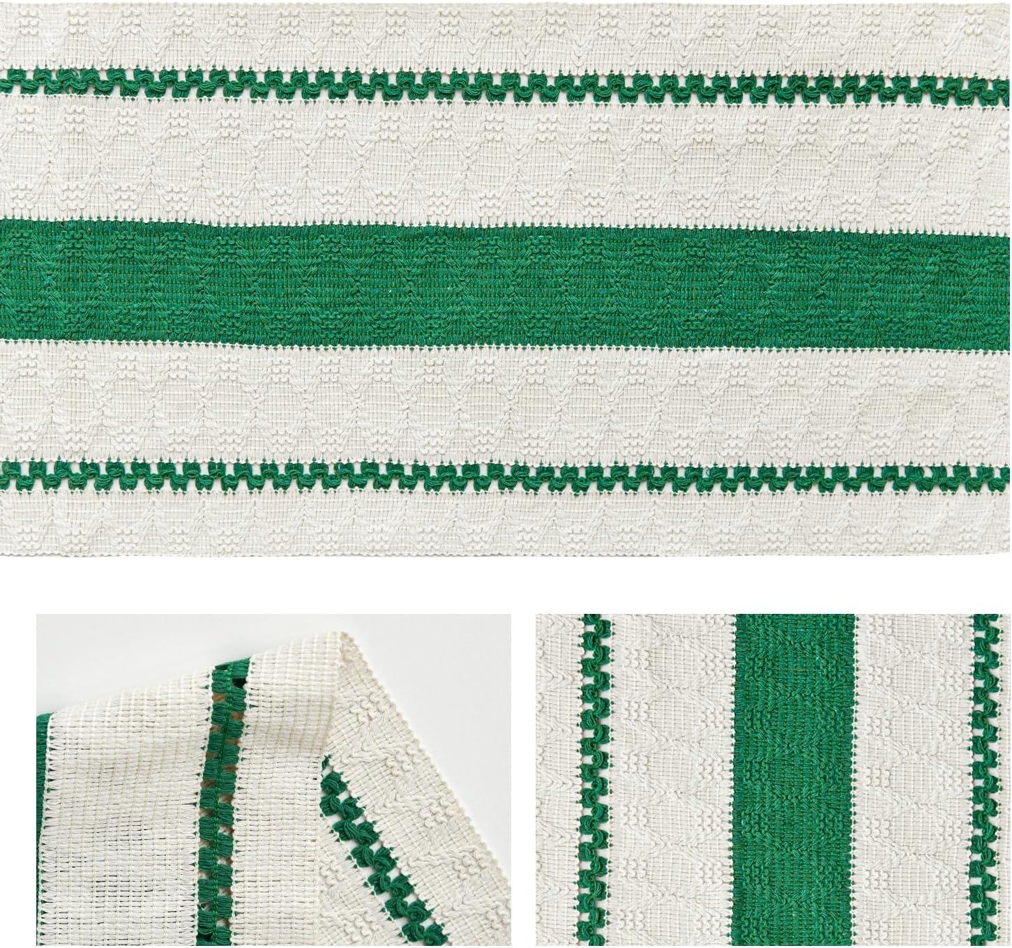 Artoid Mode Dark Blue Farmhouse Woven Rustic Table Runner, Seasonal Holiday Hollow Kitchen Dining Table Decoration for Home Party Decor 12×72 Inch(Dark Green)