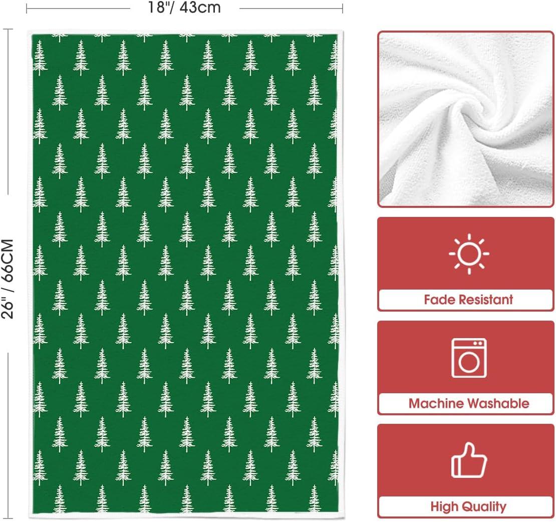 Artoid Mode Dark Green Xmas Trees Christmas Kitchen Towels Dish Towels, 18×26 Inch Holiday Farmhouse Winter Decoration Cleaning Set of 2(Dark Green)