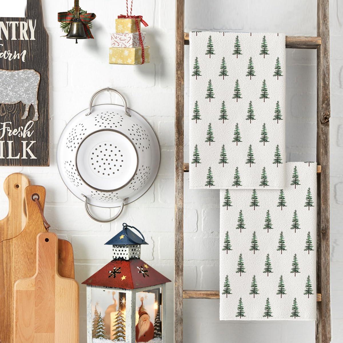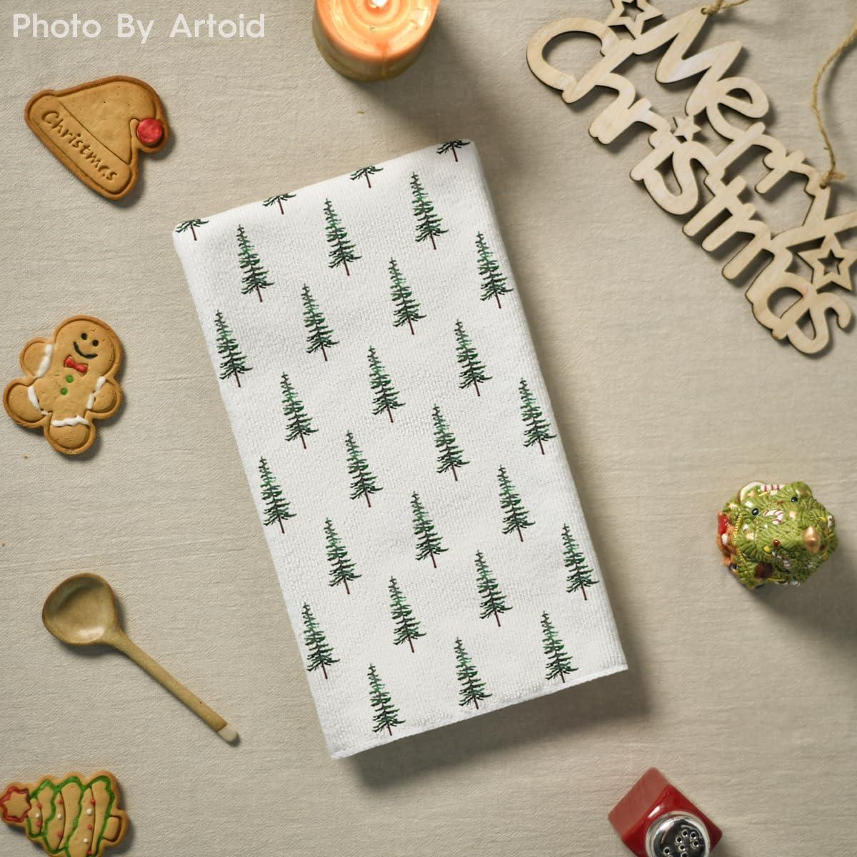 Artoid Mode Dark Green Xmas Trees Christmas Kitchen Towels Dish Towels, 18×26 Inch Holiday Farmhouse Winter Decoration Cleaning Set of 2(Green)