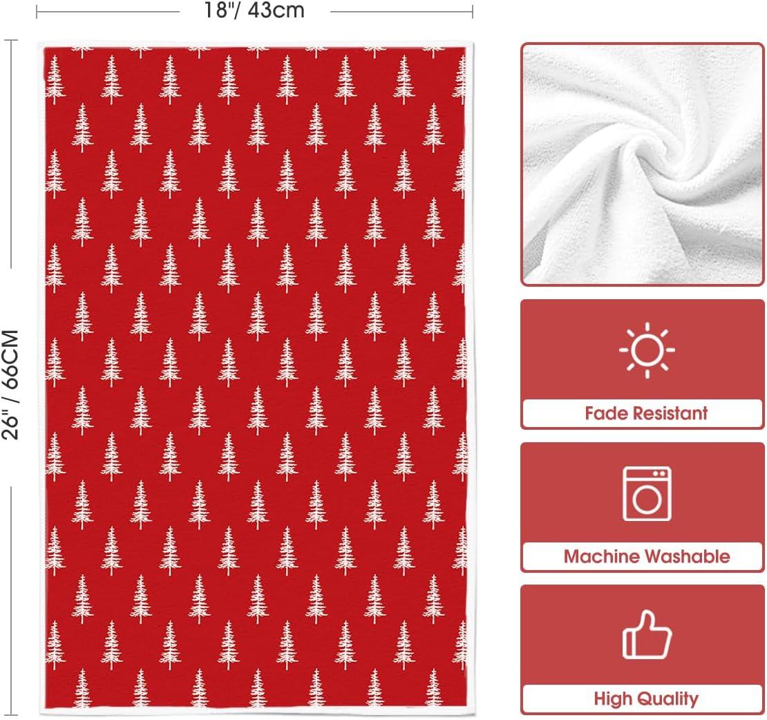 Artoid Mode Dark Green Xmas Trees Christmas Kitchen Towels Dish Towels, 18×26 Inch Holiday Farmhouse Winter Decoration Cleaning Set of 2(Red)