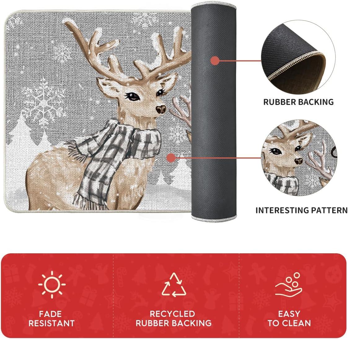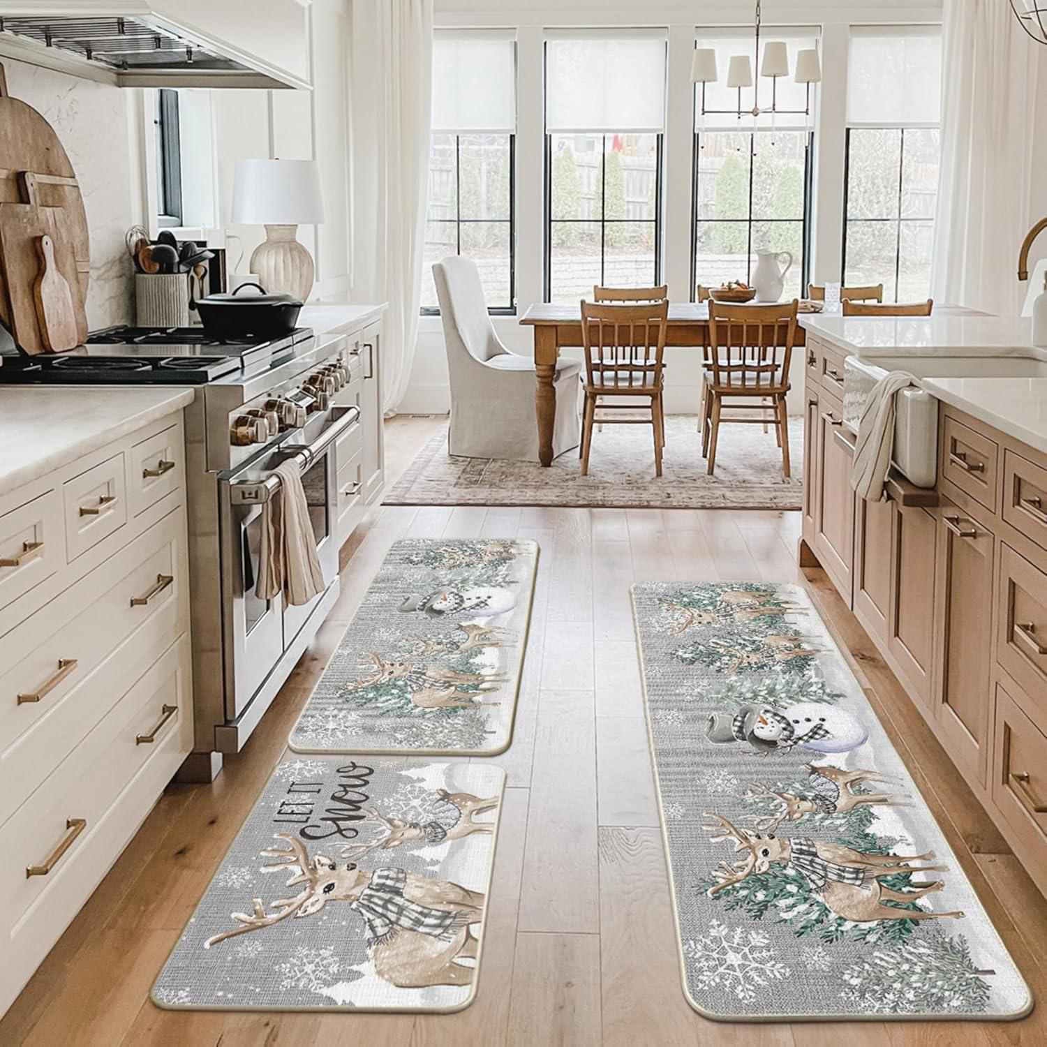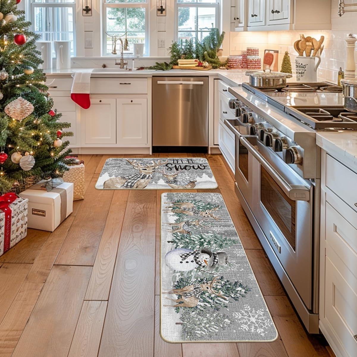 Artoid Mode Deer Tree Let It Sonw Snowflakes Christmas Kitchen Mats Set of 2, Winter Decor Low-Profile Kitchen Rugs for Floor – 17×29 and 17×47 Inch(Silver)