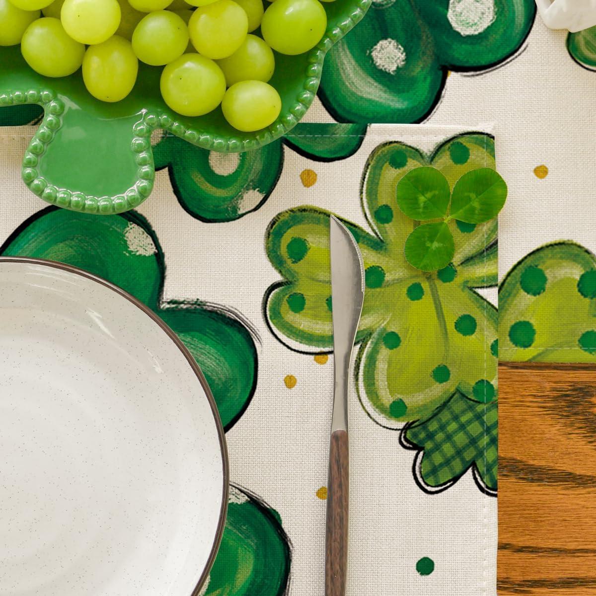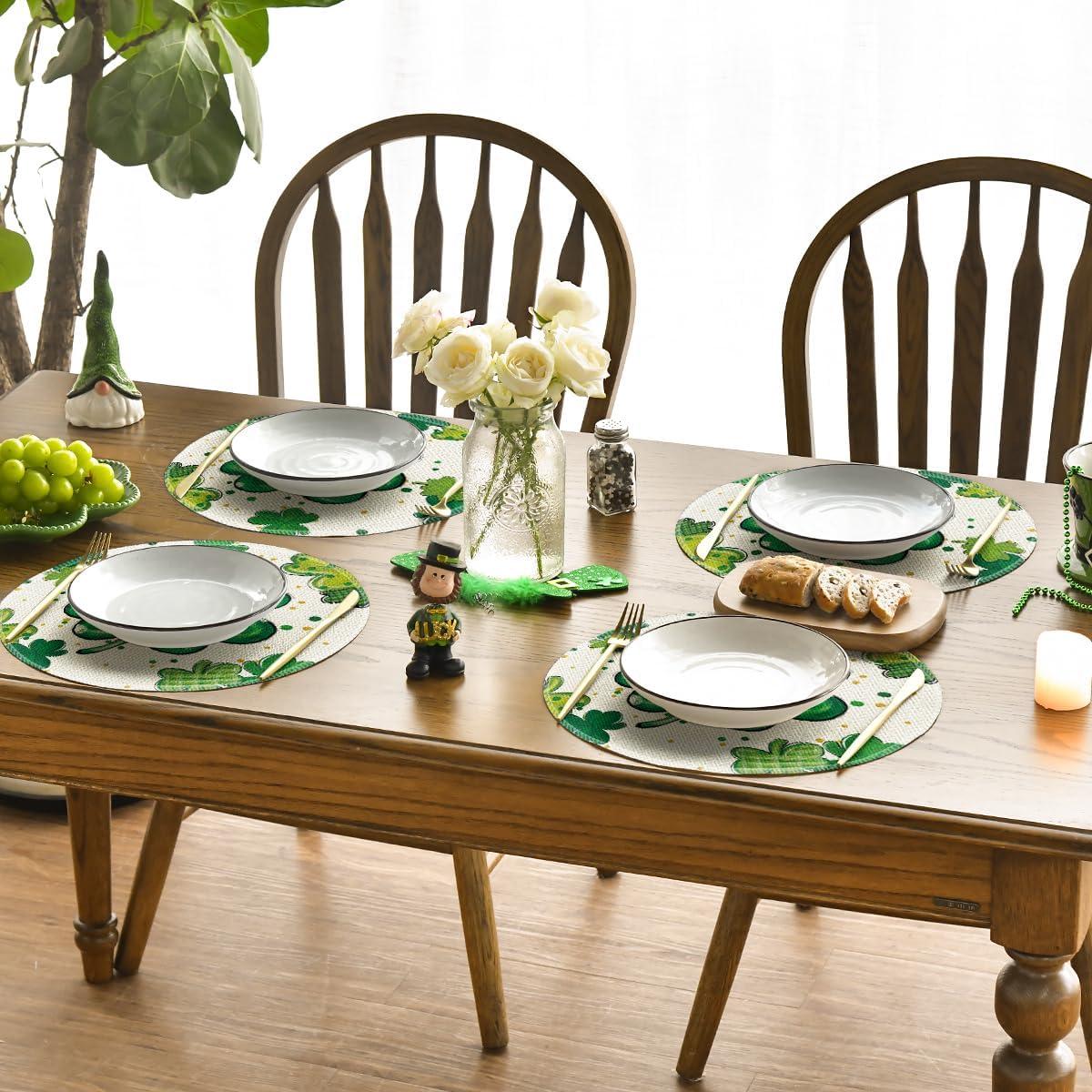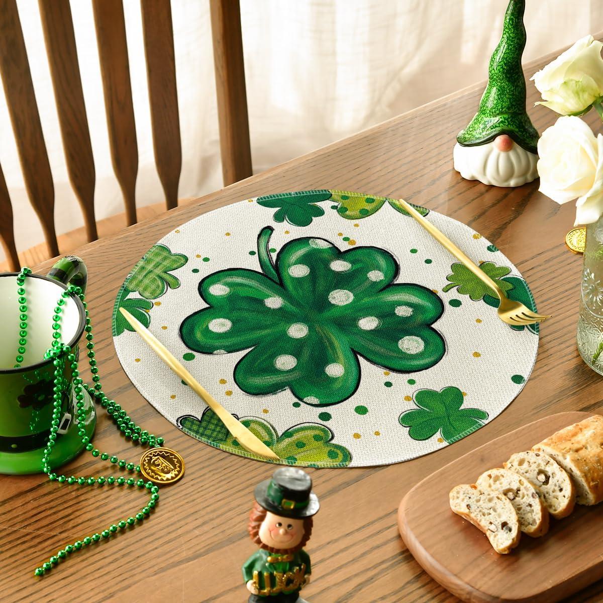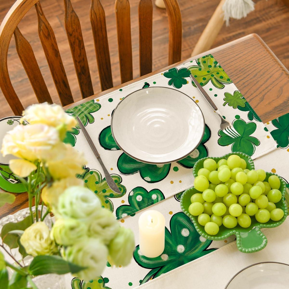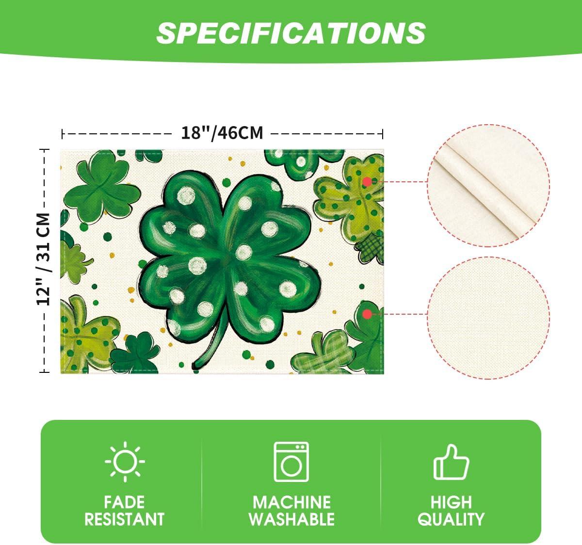 Artoid Mode Dot Shamrock Luck of The Irish St. Patrick’s Day Placemats Set of 4, 12×18 Inch Spring Table Mats for Party Kitchen Dining Decoration(Beige)