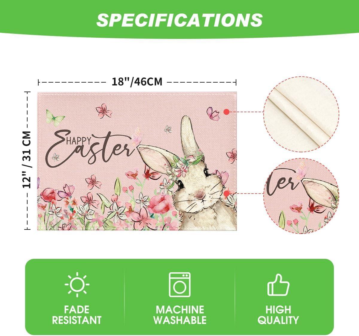 Artoid Mode Easter Round Placemats Set of 4, 14 Inch Bunnys Flowers Spring Farmhouse Round Table Mats for Easter Party Dining Decoration(Pink)