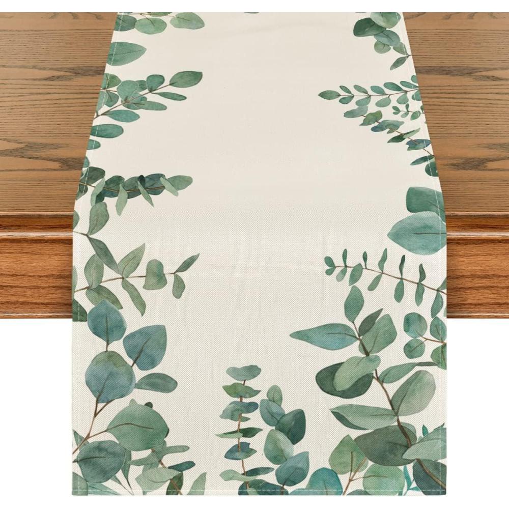 Artoid Mode Eucalyptus Leaves Table Runner, Seasonal Spring Summer Green Plants Holiday Kitchen Dining Table Decoration for Home Party Decor 13 x 72 Inch(Green)