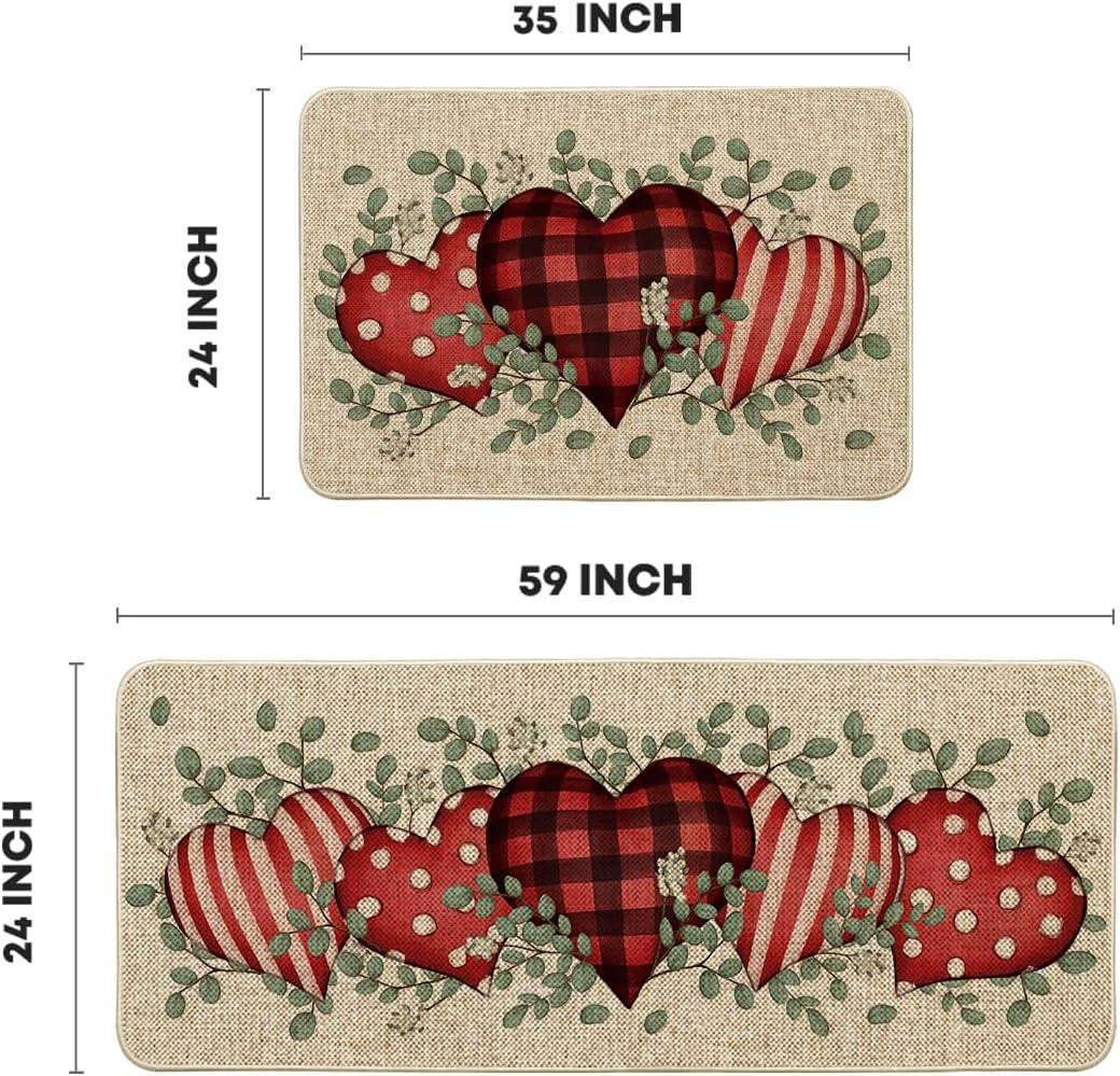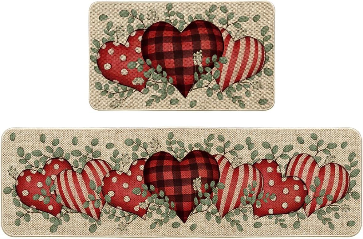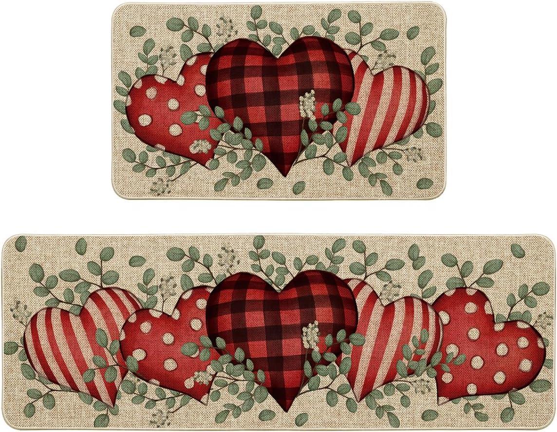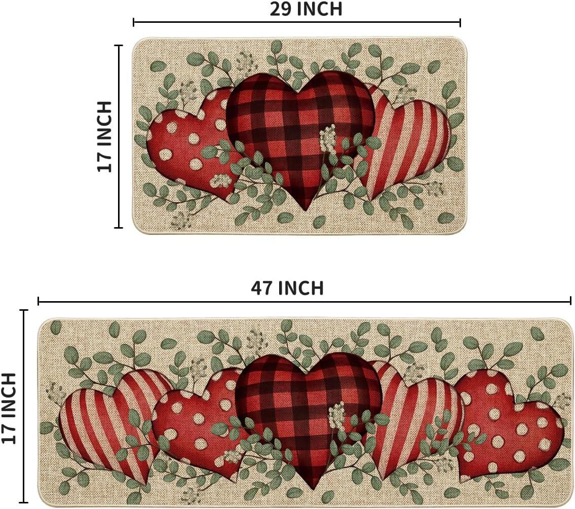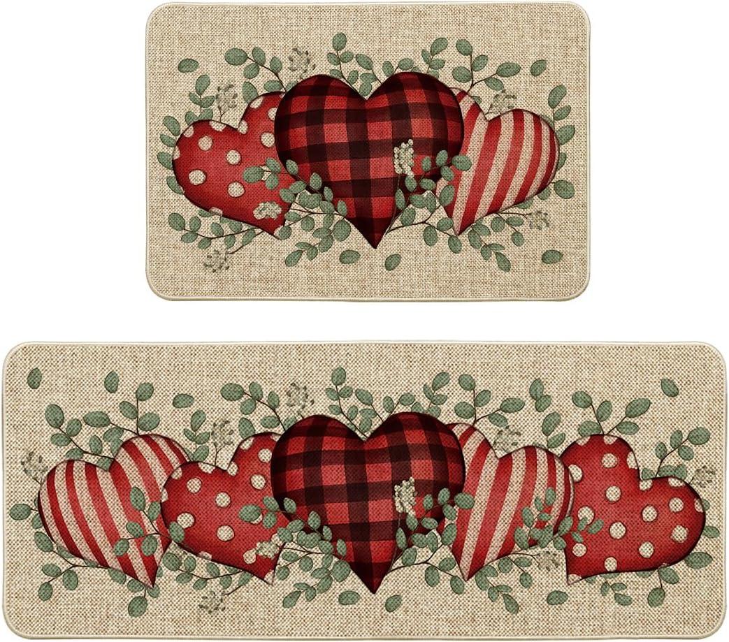 Artoid Mode Eucalyptus Love Heart Valentine’s Decorative Kitchen Mats Set of 2, Home Party Low-Profile Home Kitchen Rugs – 17×29 and 17×47 Inch(Beige)