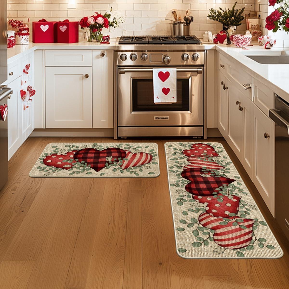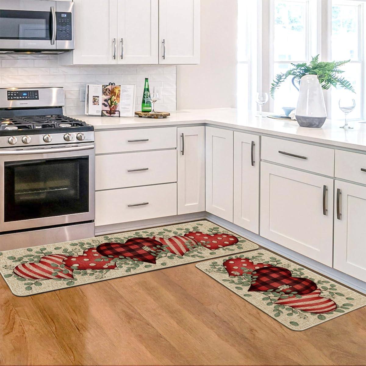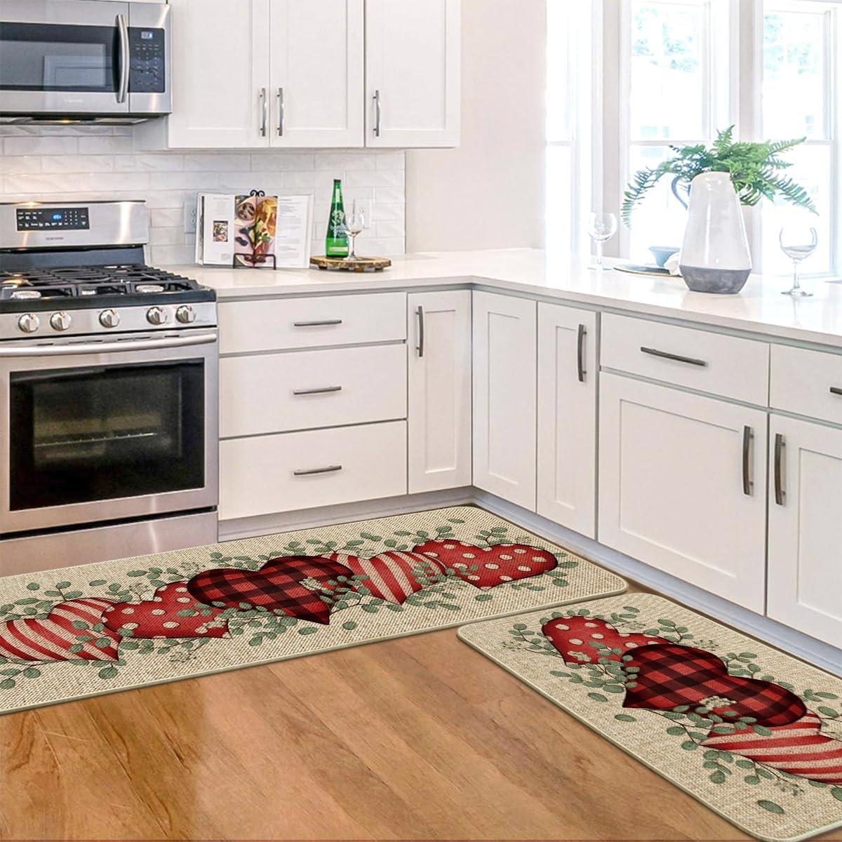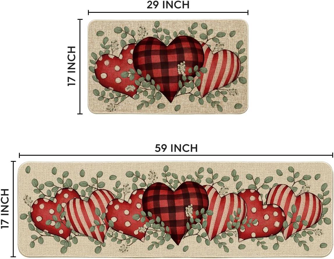 Artoid Mode Eucalyptus Love Heart Valentine’s Decorative Kitchen Mats Set of 2, Home Party Low-Profile Home Kitchen Rugs – 17×29 and 17×47 Inch(Beige)