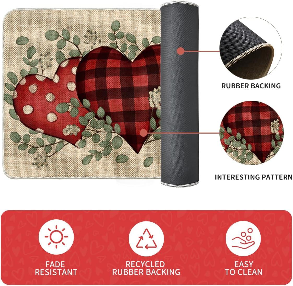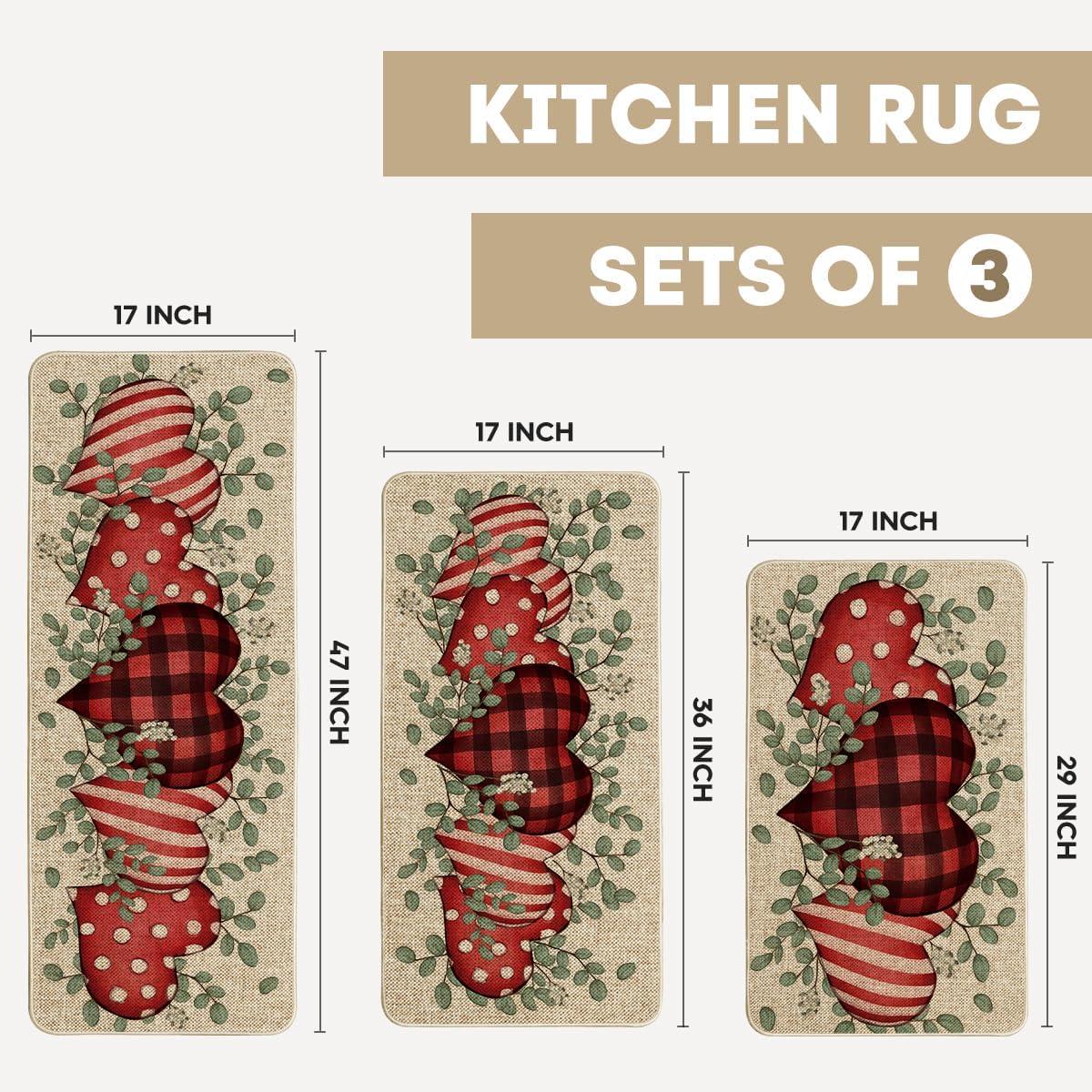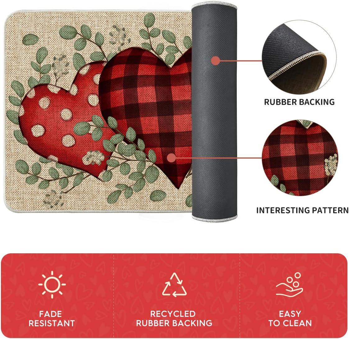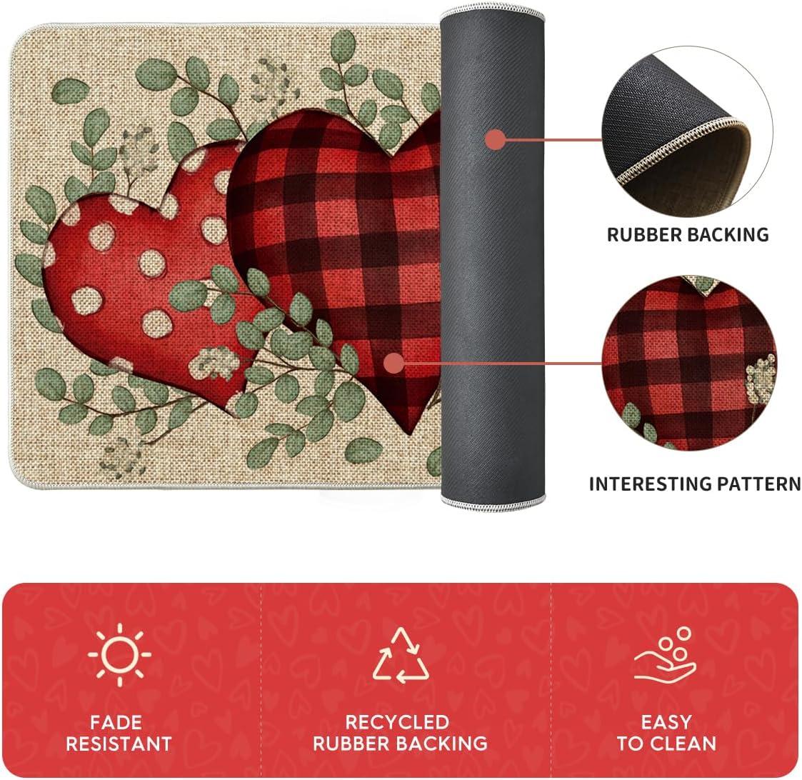 Artoid Mode Eucalyptus Love Heart Valentine’s Decorative Kitchen Mats Set of 2, Home Party Low-Profile Home Kitchen Rugs – 17×29 and 17×47 Inch(Beige)
