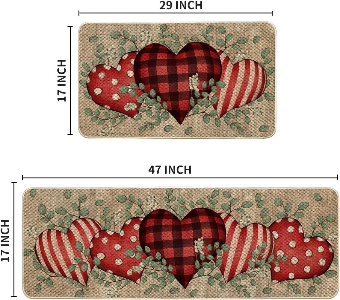 Artoid Mode Eucalyptus Love Heart Valentine’s Decorative Kitchen Mats Set of 2, Home Party Low-Profile Home Kitchen Rugs – 17×29 and 17×47 Inch(Brown)