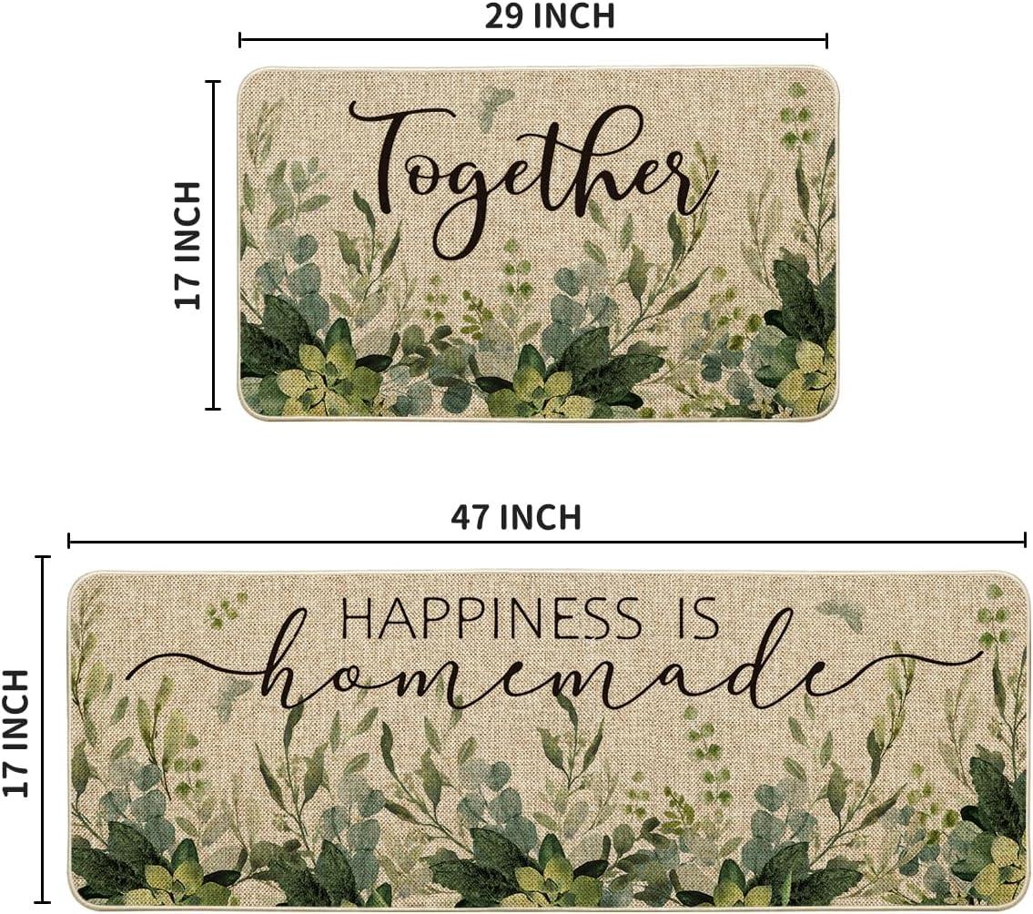 Artoid Mode Eucalyptus Together Spring Kitchen Mats Set of 2, Summer Home Decor Low-Profile Kitchen Rugs for Floor – 17×29 and 17×47 Inch