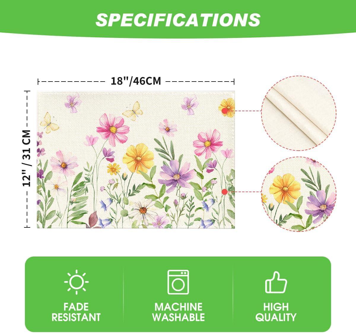 Easy to Clean: Machine wash and lay the placemat flat to dry. Stays the same and as new after every wash. Material: 100% Polyester, no shrink, no color ran. Imported, Country of origin: China