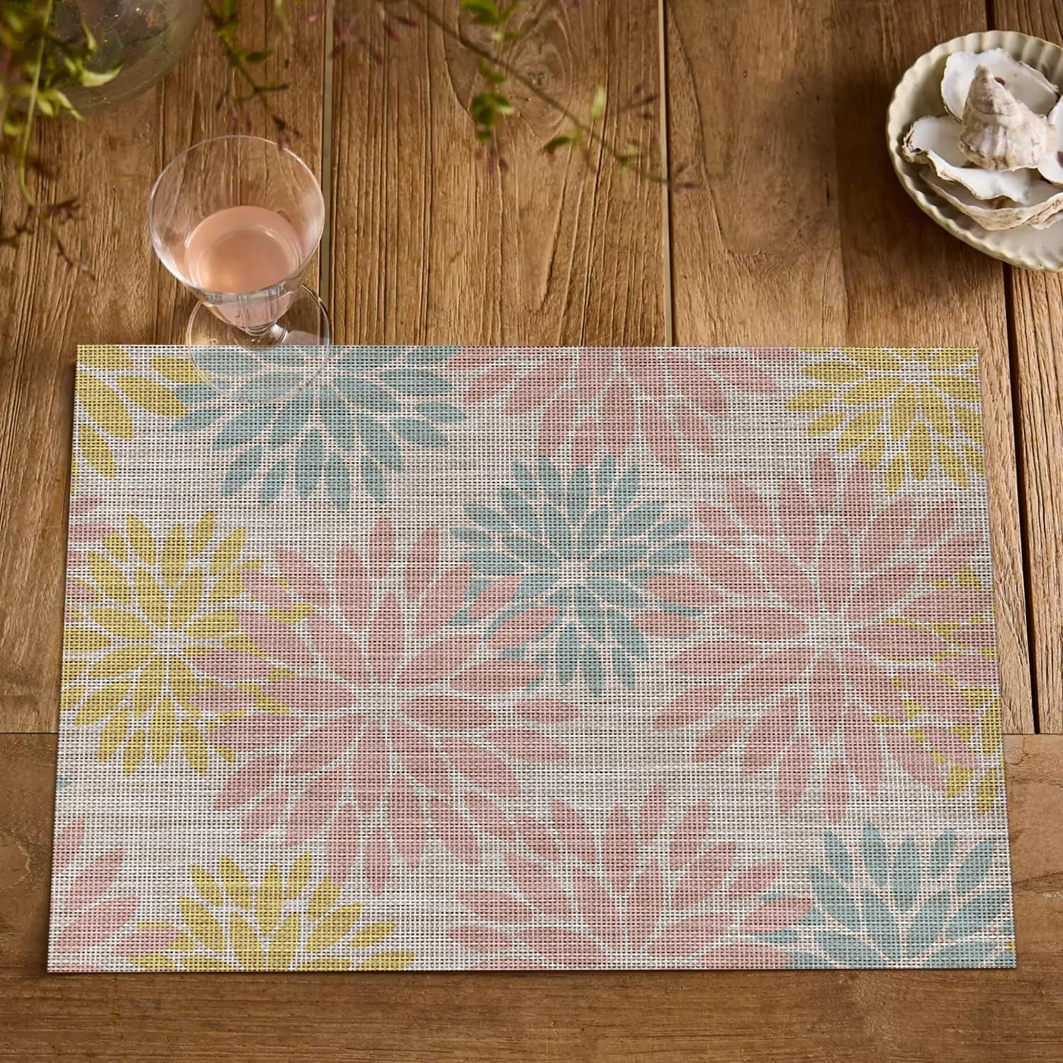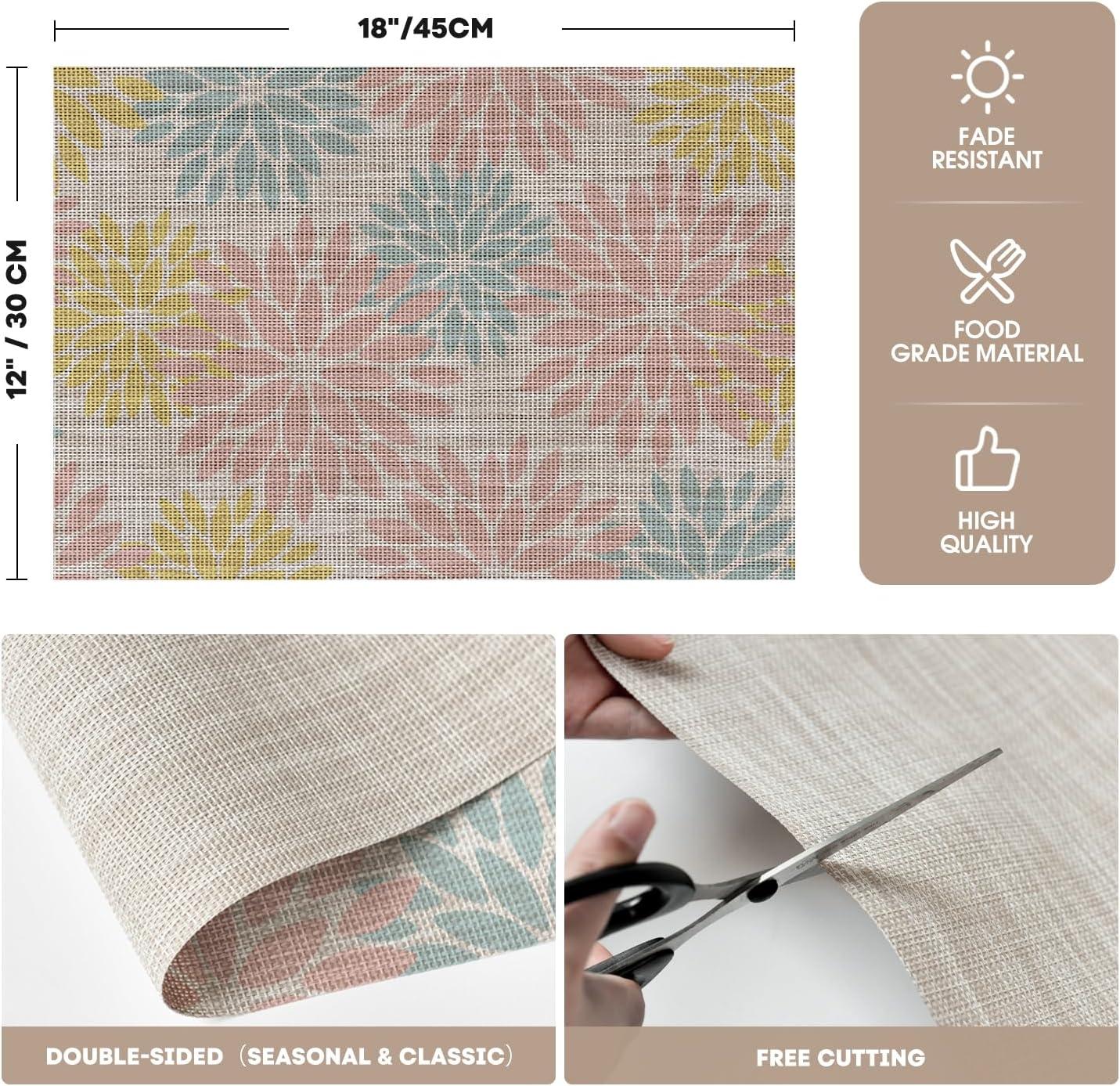 Artoid Mode Floral Vinyl Placemats Set of 4, 12×18 Inch Heat Resistant Washable Non-Slip Plistic PVC Place Mats for Party Kitchen Dining Decor, Pink Blue(Pink/Blue)