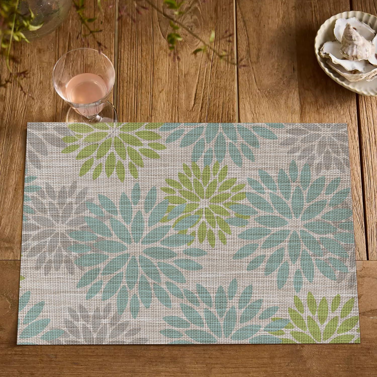Artoid Mode Floral Vinyl Placemats Set of 4, 12×18 Inch Heat Resistant Washable Non-Slip Plistic PVC Place Mats for Party Kitchen Dining Decor, Pink Blue(Sage)