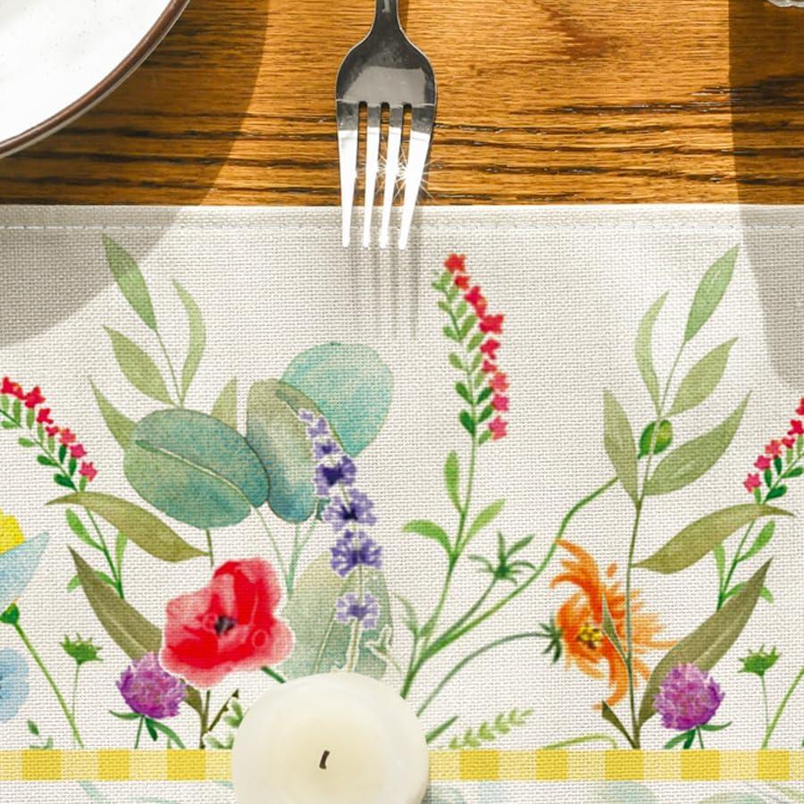 Artoid Mode Flower Floral Table Runner, Spring Summer Seasonal Kitchen Dining Table Decoration for Indoor Outdoor Home Party Decor 13 x 72 Inch(Green)