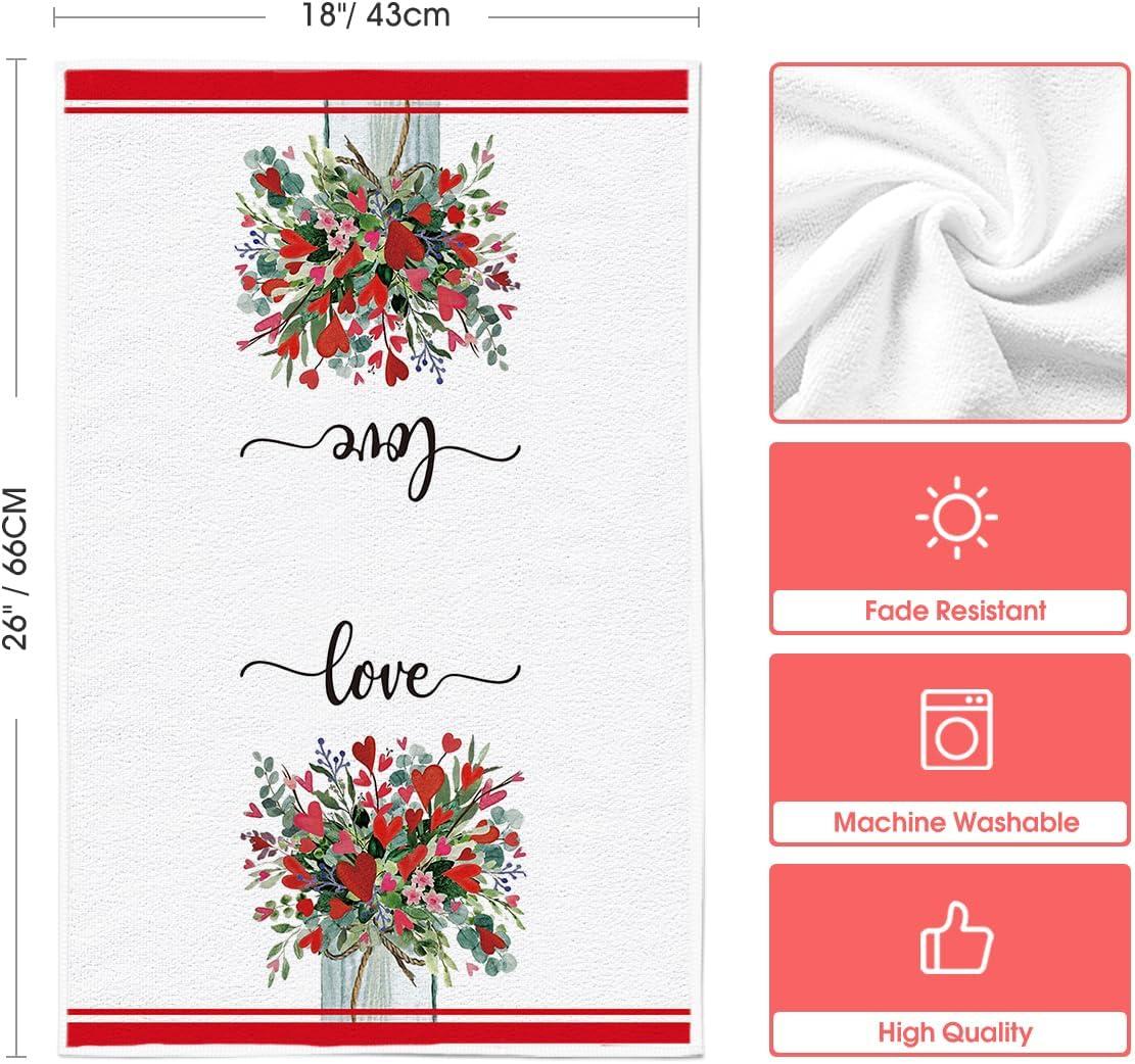 Artoid Mode Flower Vase Heart Love Kitchen Towels Dish Towels, 18×26 Inch Farmhouse Anniversary Decoration Hand Towels Set of 2