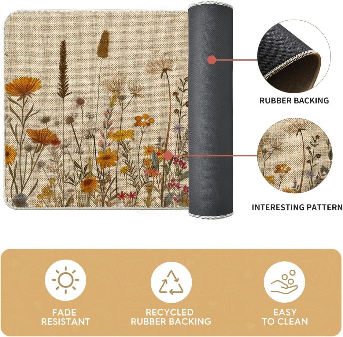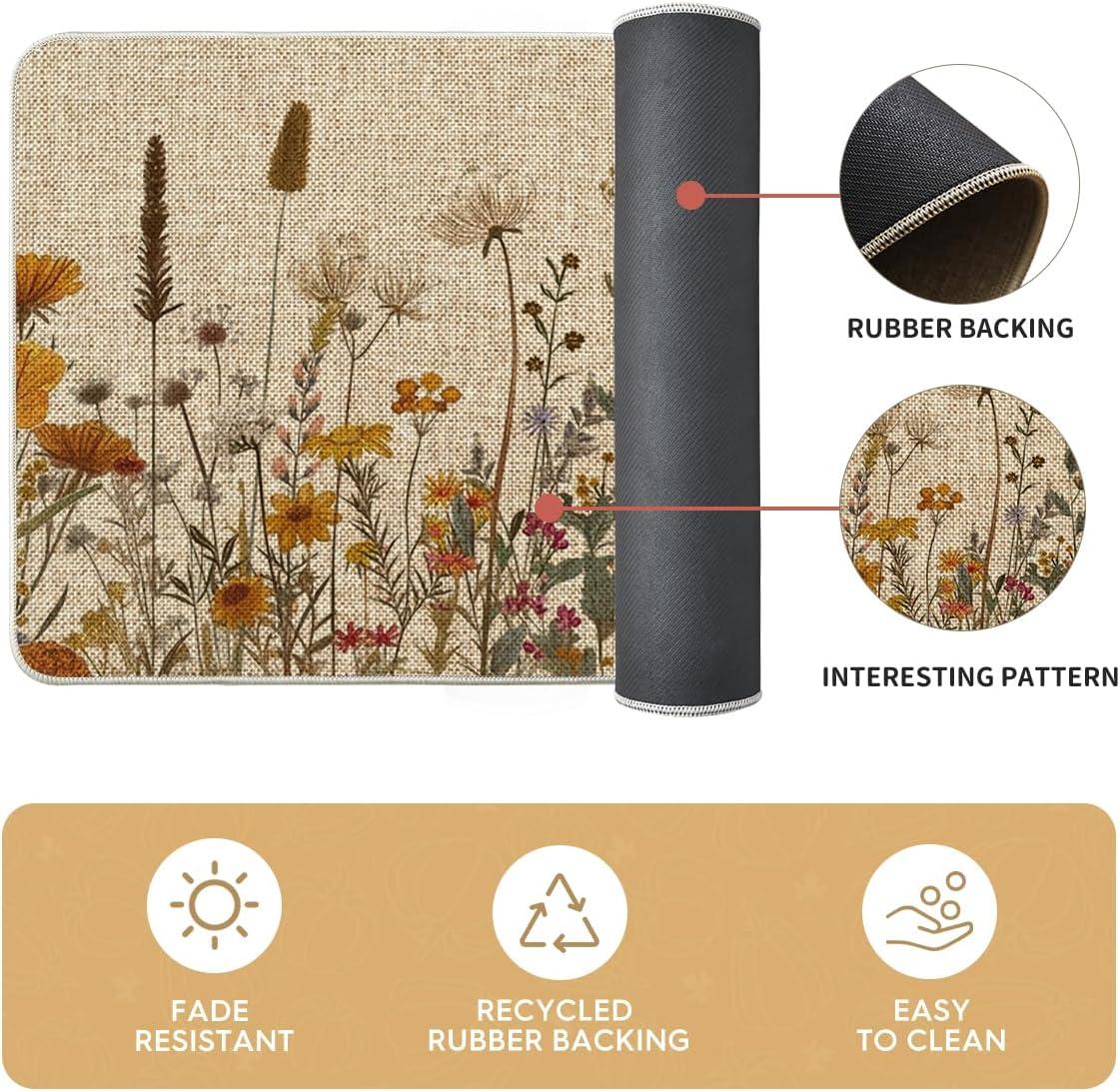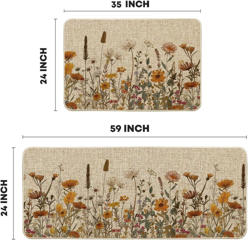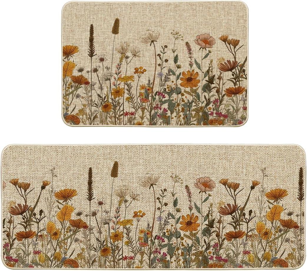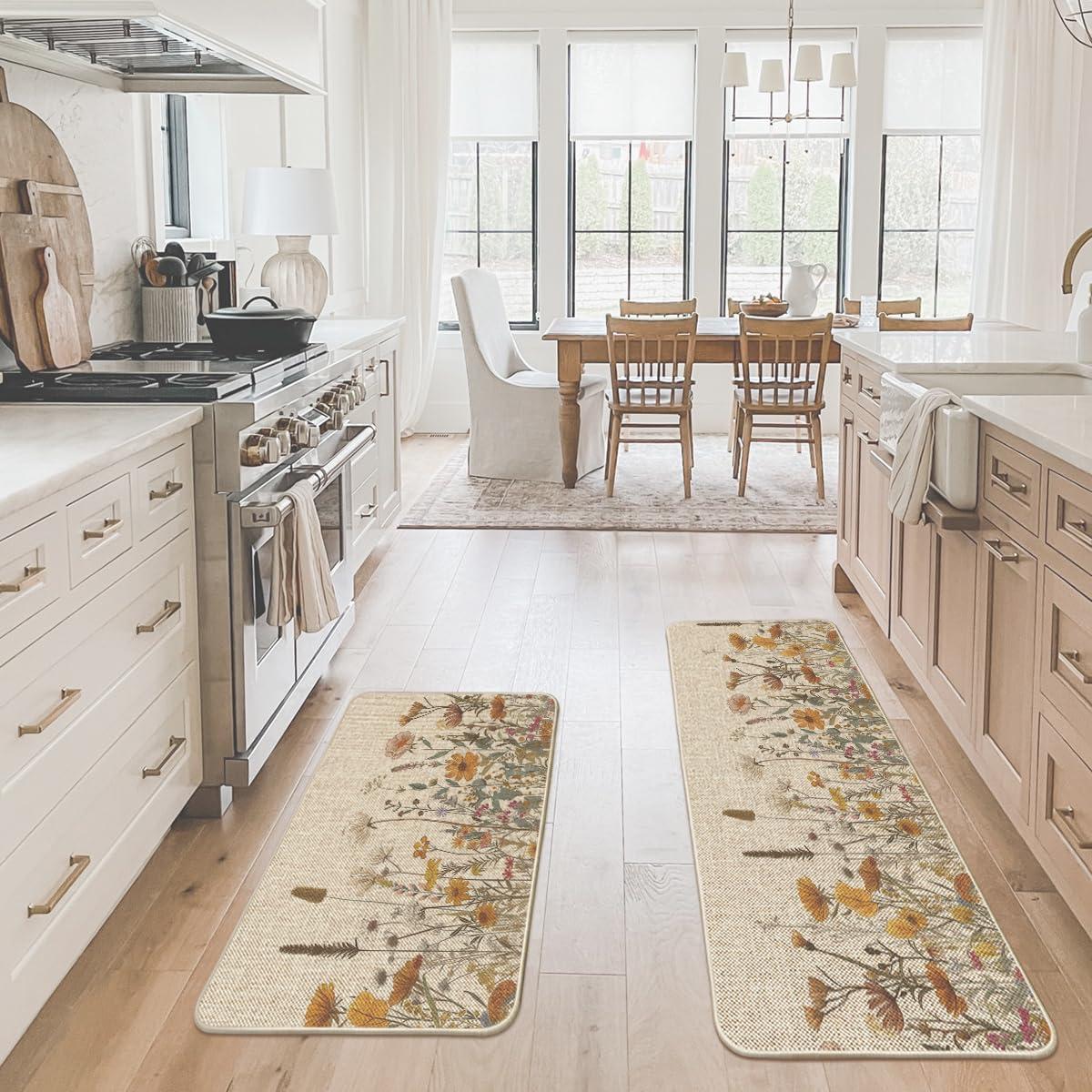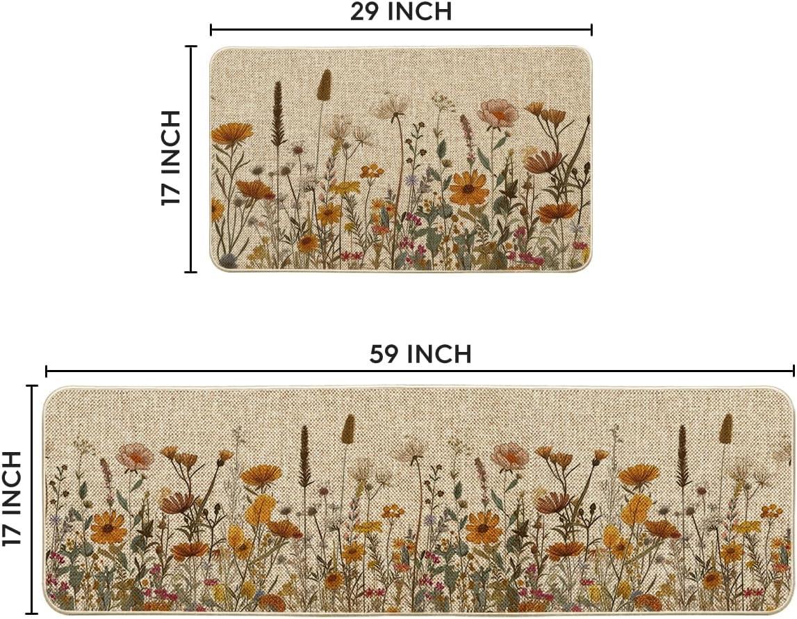 Artoid Mode Flowers Fall Kitchen Mats Set of 2, Autumn Home Decor Low-Profile Kitchen Rugs for Floor – 17×29 and 17×47 Inch(Beige)