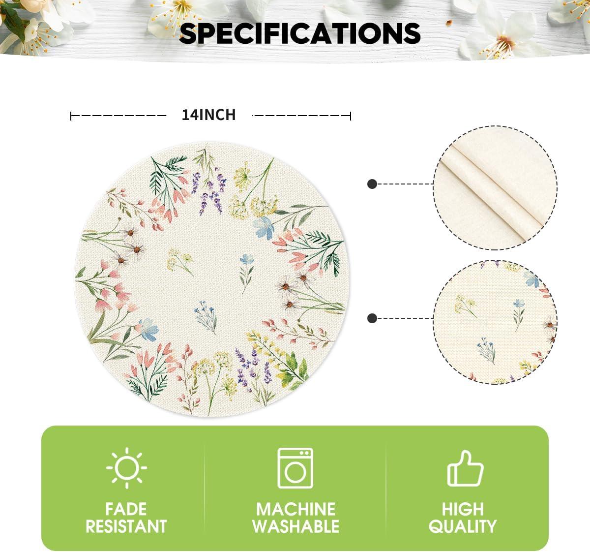 Artoid Mode Flowers Floral Spring Round Placemats Set of 4, 14 Inch Summer Holiday Round Table Mats for Dining Decoration(Beige)