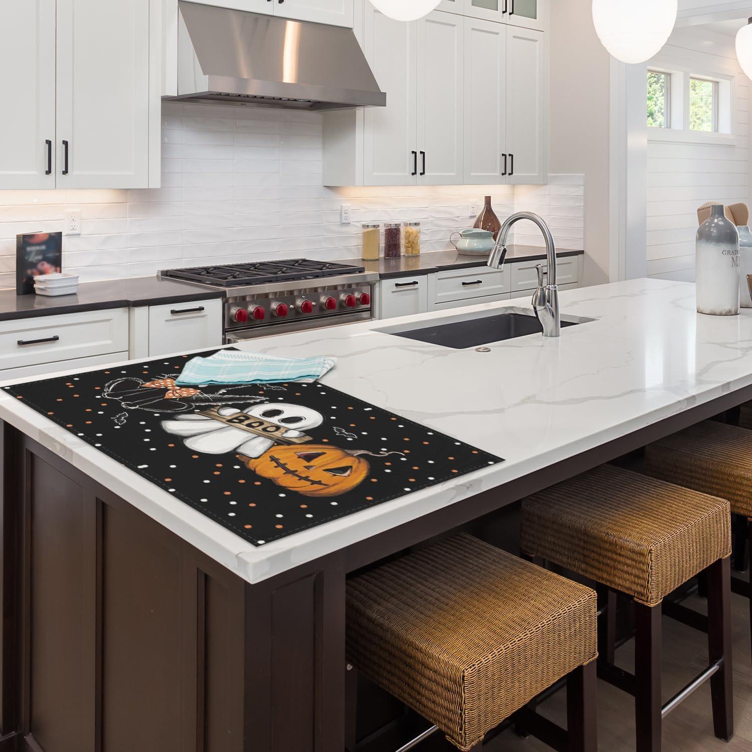 Artoid Mode Ghost Cat Halloween Round Placemats Set of 4, 14 Inch Table Mats for Party Kitchen Dining(Black)