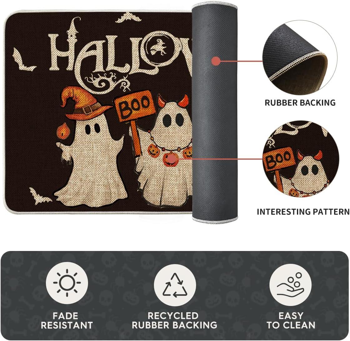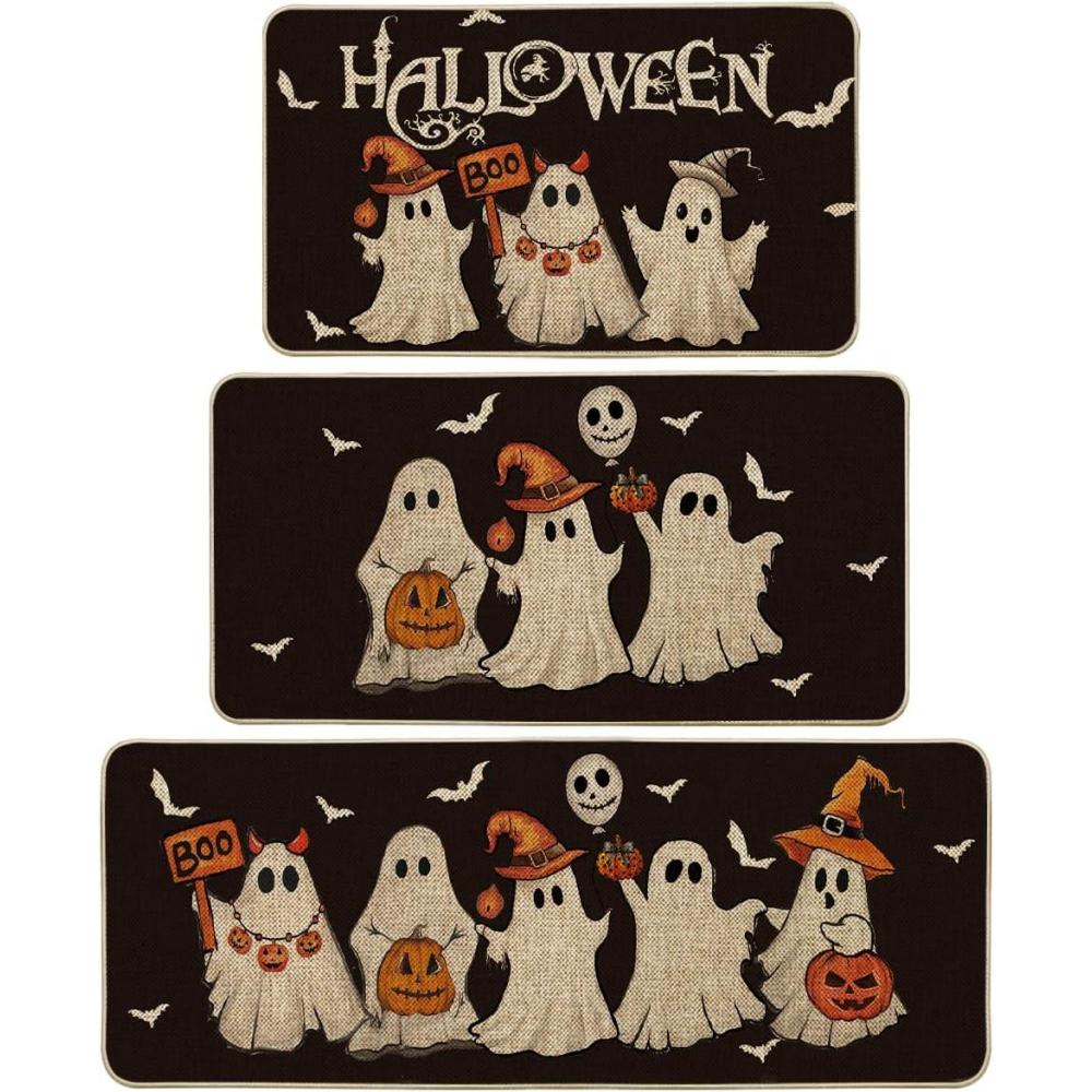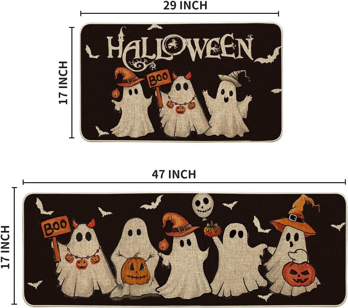 Artoid Mode Ghost Pumpkin Bat Black Halloween Kitchen Mats Set of 2, Black Home Decor Low-Profile Kitchen Rugs for Floor – 17×29 and 17×47 Inch(Black)