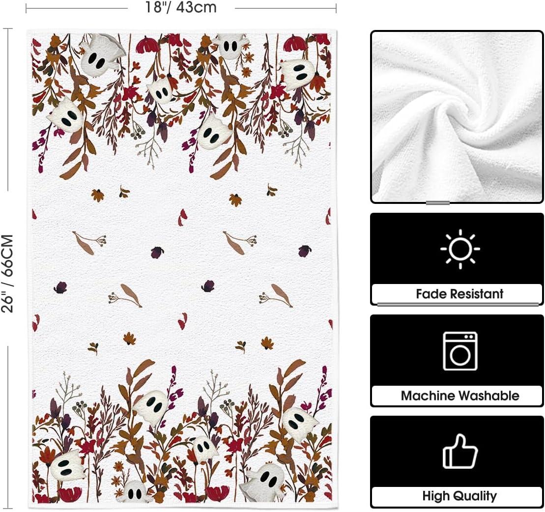 Artoid Mode Ghost Wildflower Floral Halloween Kitchen Towels Dish Towels, 18×26 Inch Farmhouse Leaves Decoration Hand Towels Set of 2