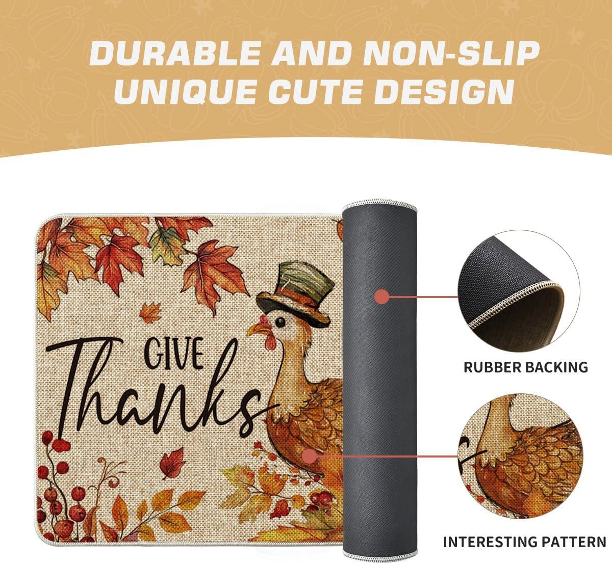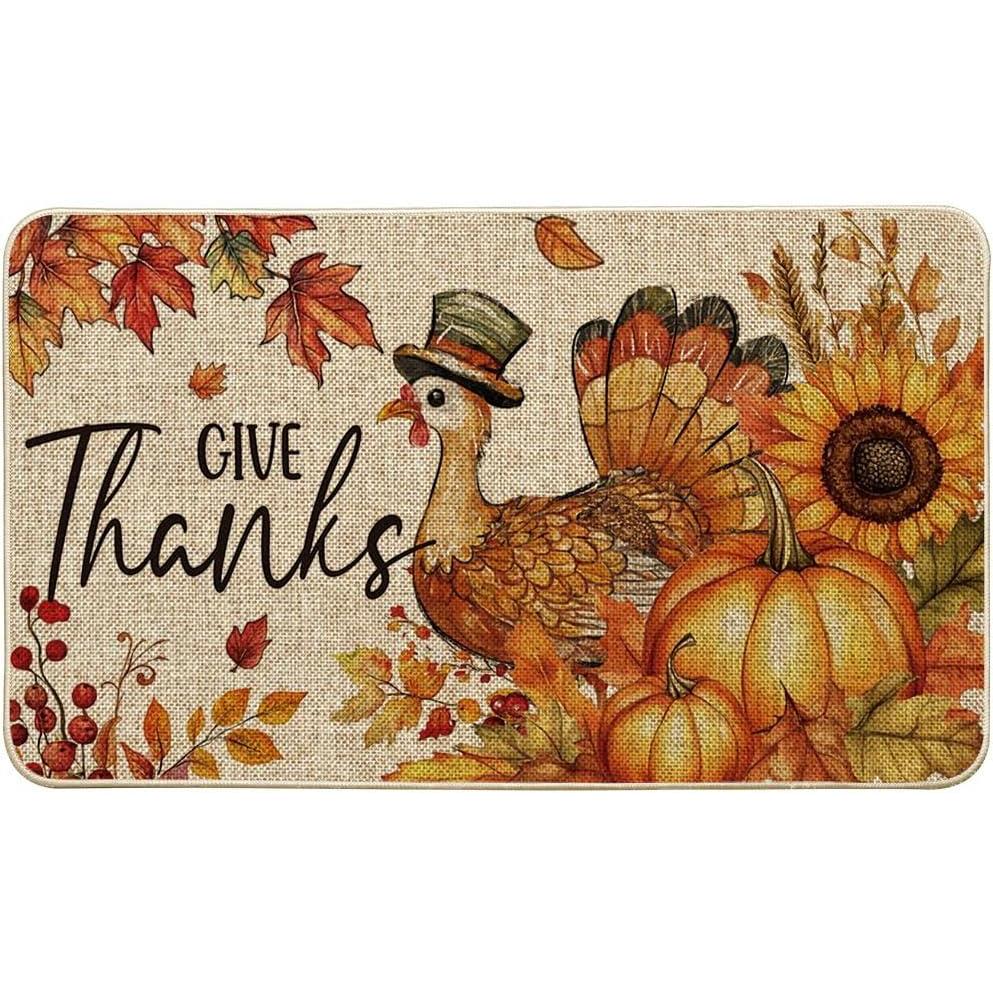 Artoid Mode Give Thanks Turkey Sunflowers Pumpkin Thanksgiving Doormat, Thanksful Home Decor Low-Profile Switch Rug Floor Mat Door Mat for Outdoor Indoor 17×29 Inch