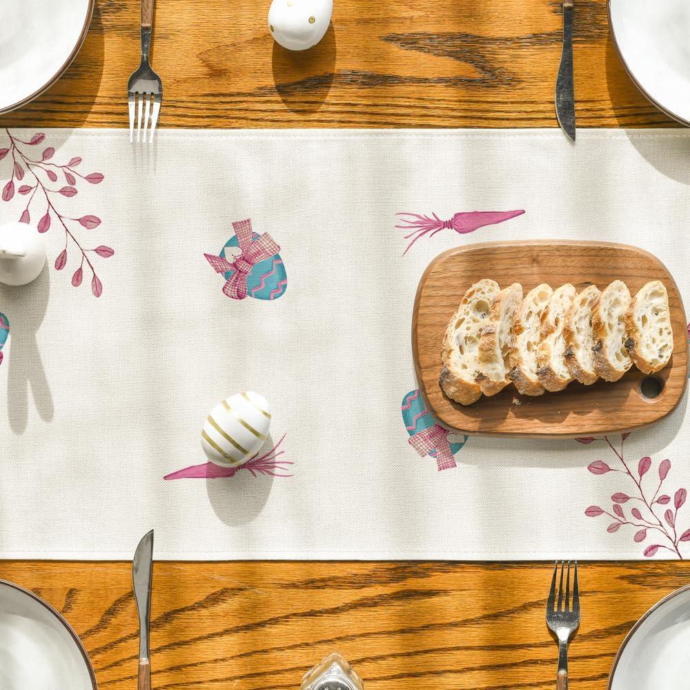 Artoid Mode Green Blue Pink Rabbit Bunny Happy Easter Table Runner, Spring Seasonal Holiday Kitchen Dining Table Decoration for Home Party Decor 13 x 72 Inch(Green/Blue/Pink)