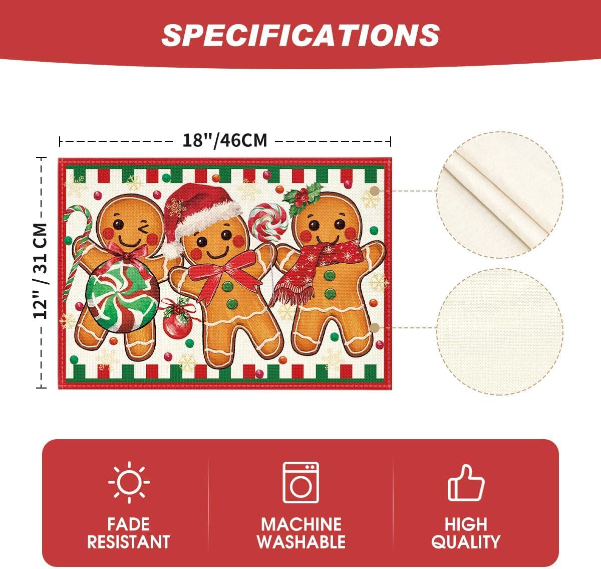 Be the first to review “Artoid Mode Green Gingerbread Candy Cane Christmas Round Placemats Set of 4, 14 Inch Winter Round Table Mats for Dining Decoration(Red/Beige)”