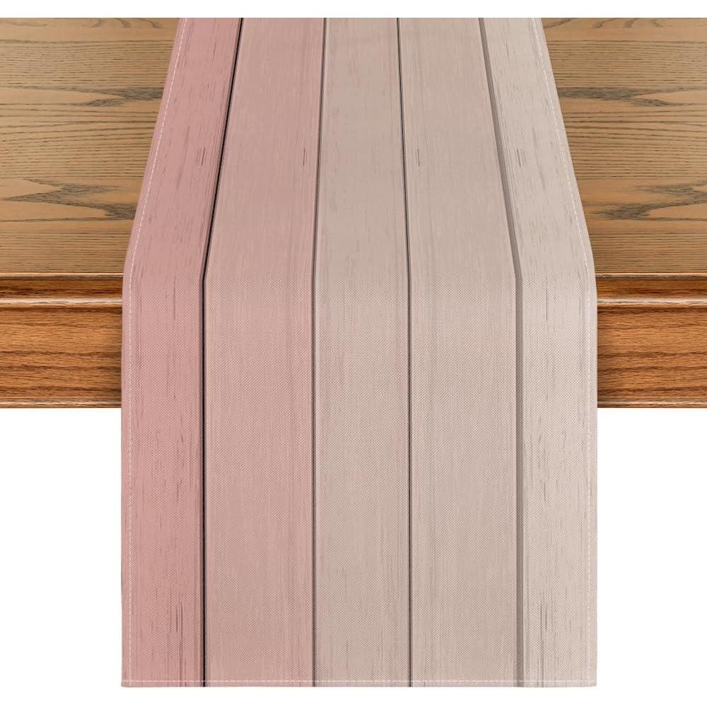 Artoid Mode Green Retro Rustic Wood Texture Table Runner, Seasonal Spring Kitchen Dining Table Decoration for Home Party Decor 13×72 Inch(Pink)