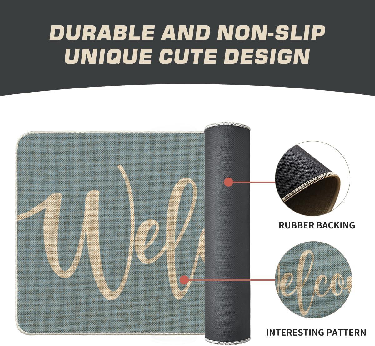 Artoid Mode Green Welcome Spring Doormat, Home Summer Decor Switch Rug Door Mat Floor Mat 17×29 Inch(Blue-1 Welcome)