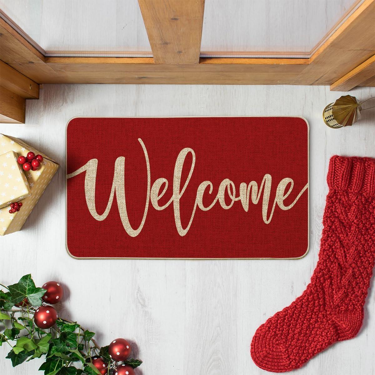Artoid Mode Green Welcome Spring Doormat, Home Summer Decor Switch Rug Door Mat Floor Mat 17×29 Inch(Red-1 Welcome)