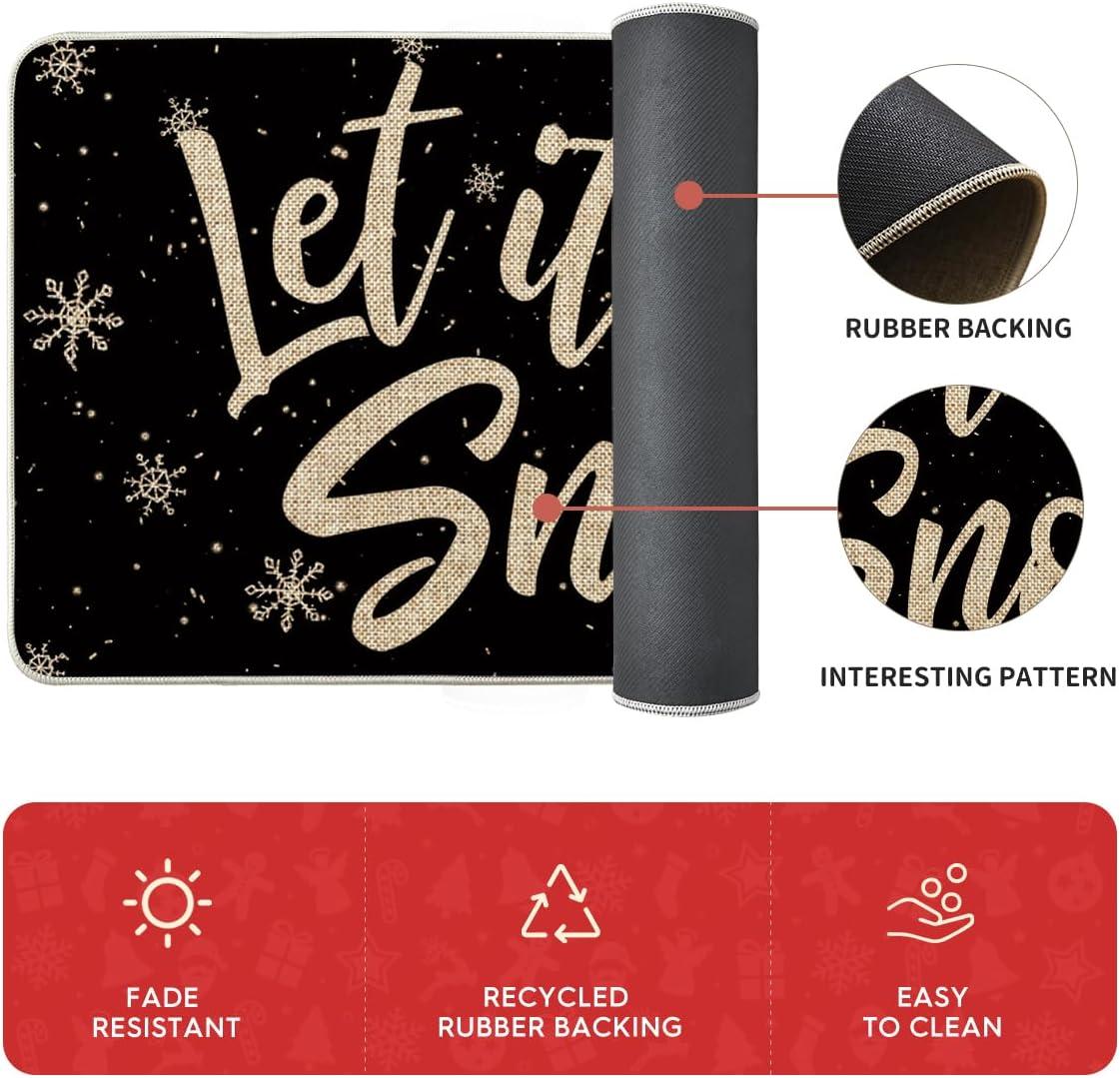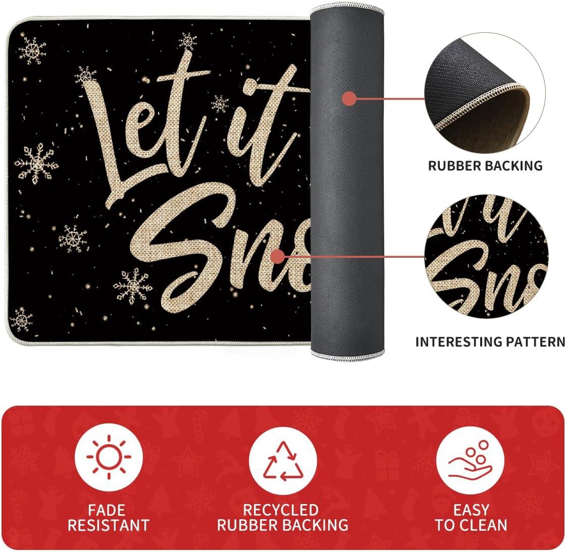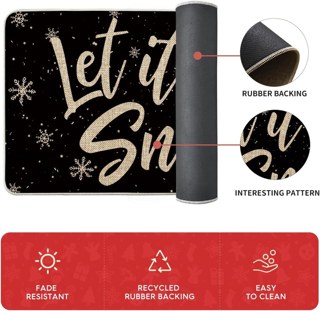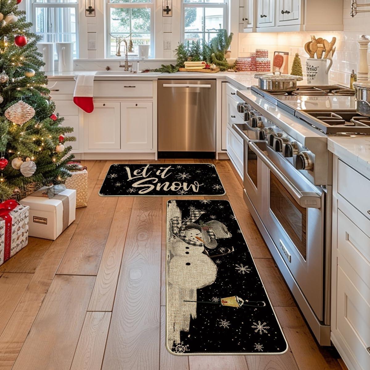 Artoid Mode Grey Let It Snow Snowflake Snowman Winter Kitchen Mats Set of 2, Christmas Decor Low-Profile Kitchen Rugs for Floor – 17×29 and 17×47 Inch(Black)
