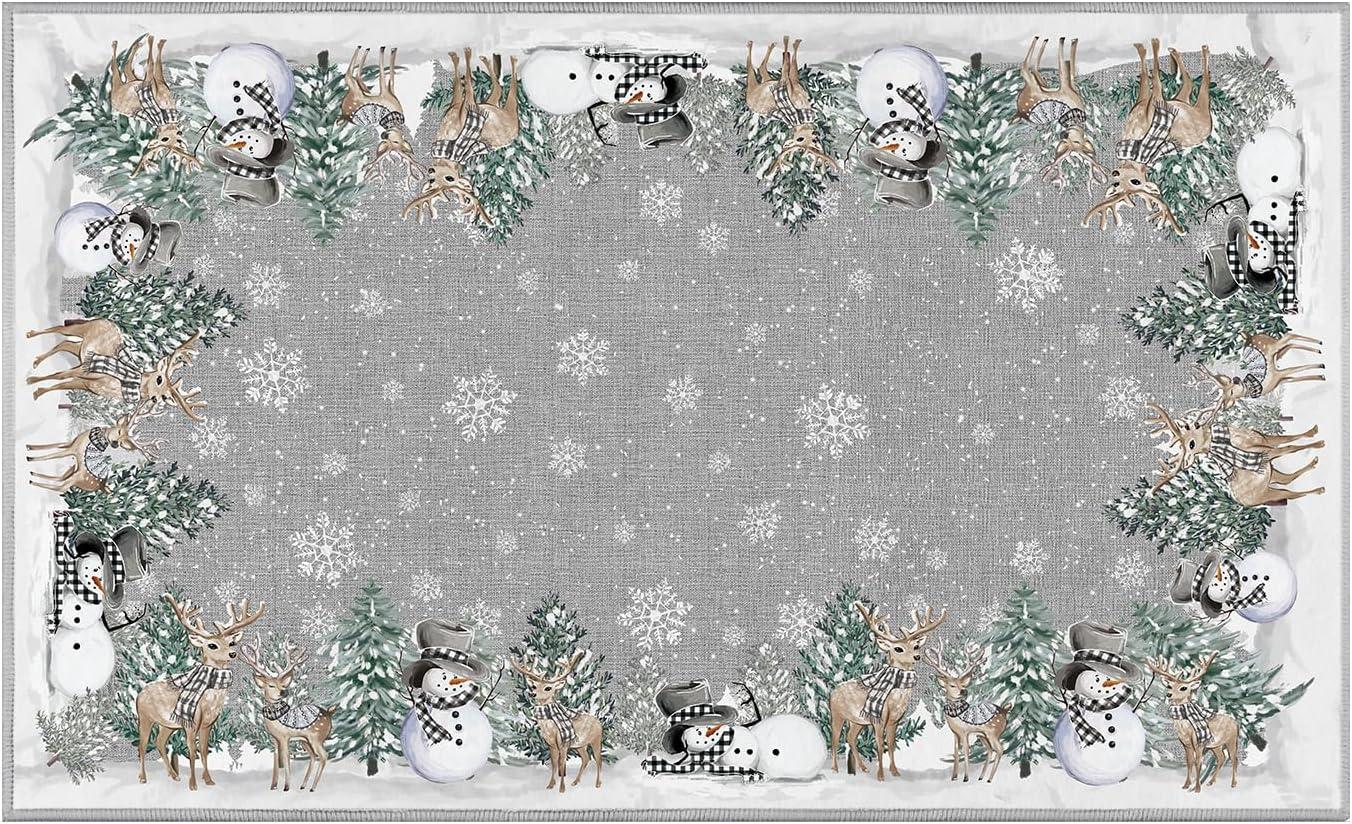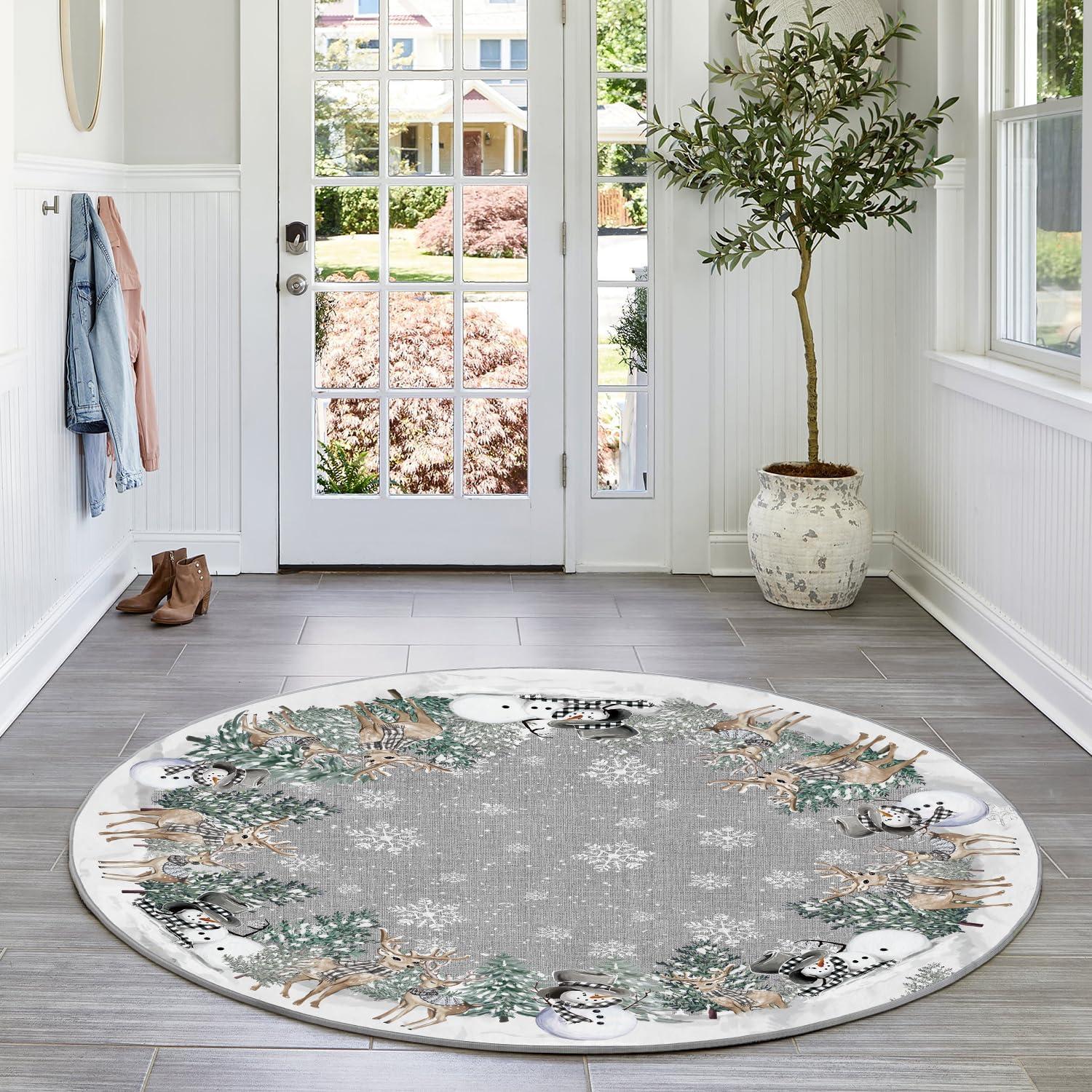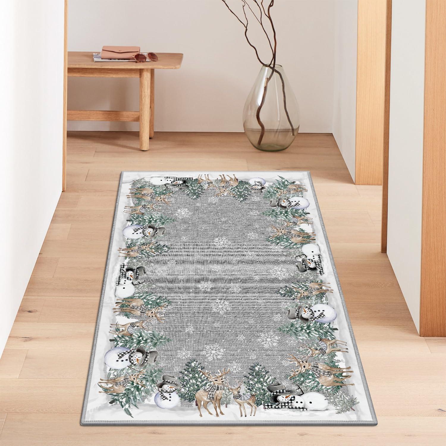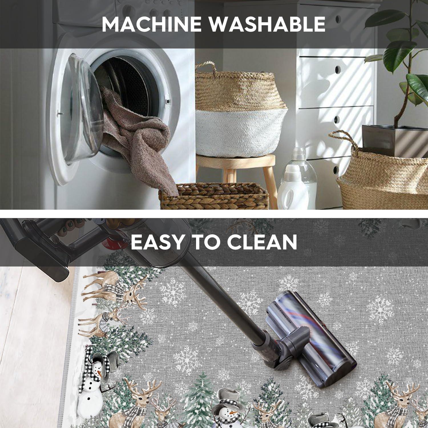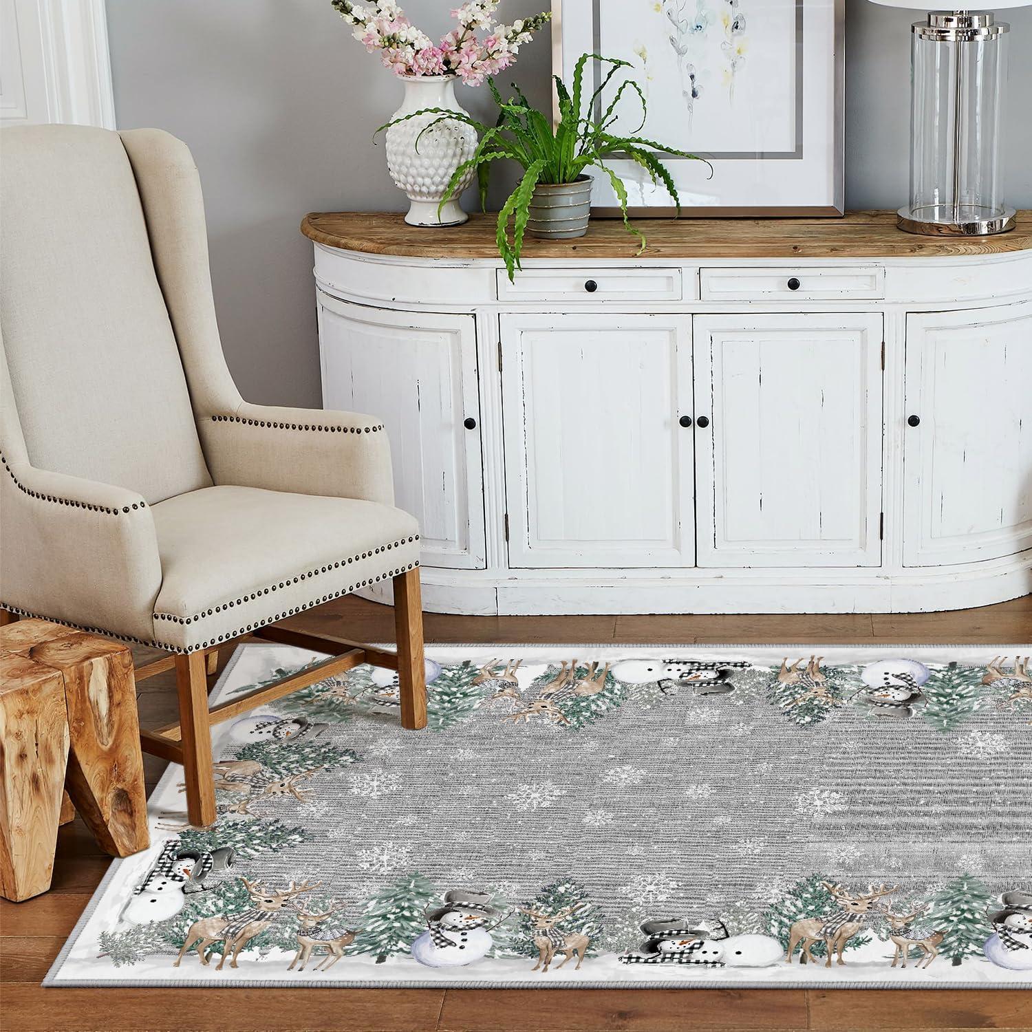 Artoid Mode Grey Snowman Deer Tree Christmas Area Rug, Winter Home Decor Low-Profile Washable Area Rugs for Entryway Bedroom Living Room Laundry Room Indoor 5×7 Feet(Grey Snowman)