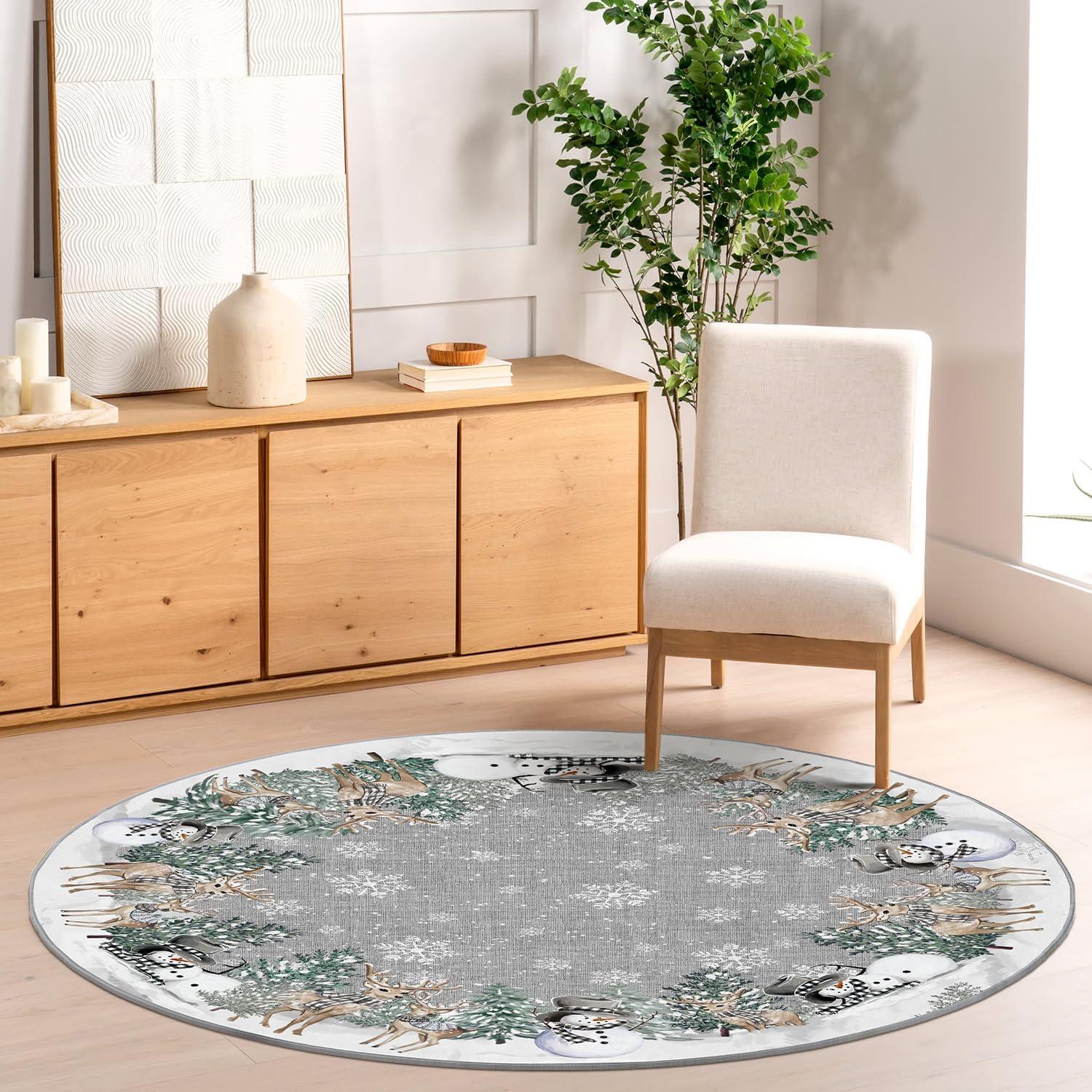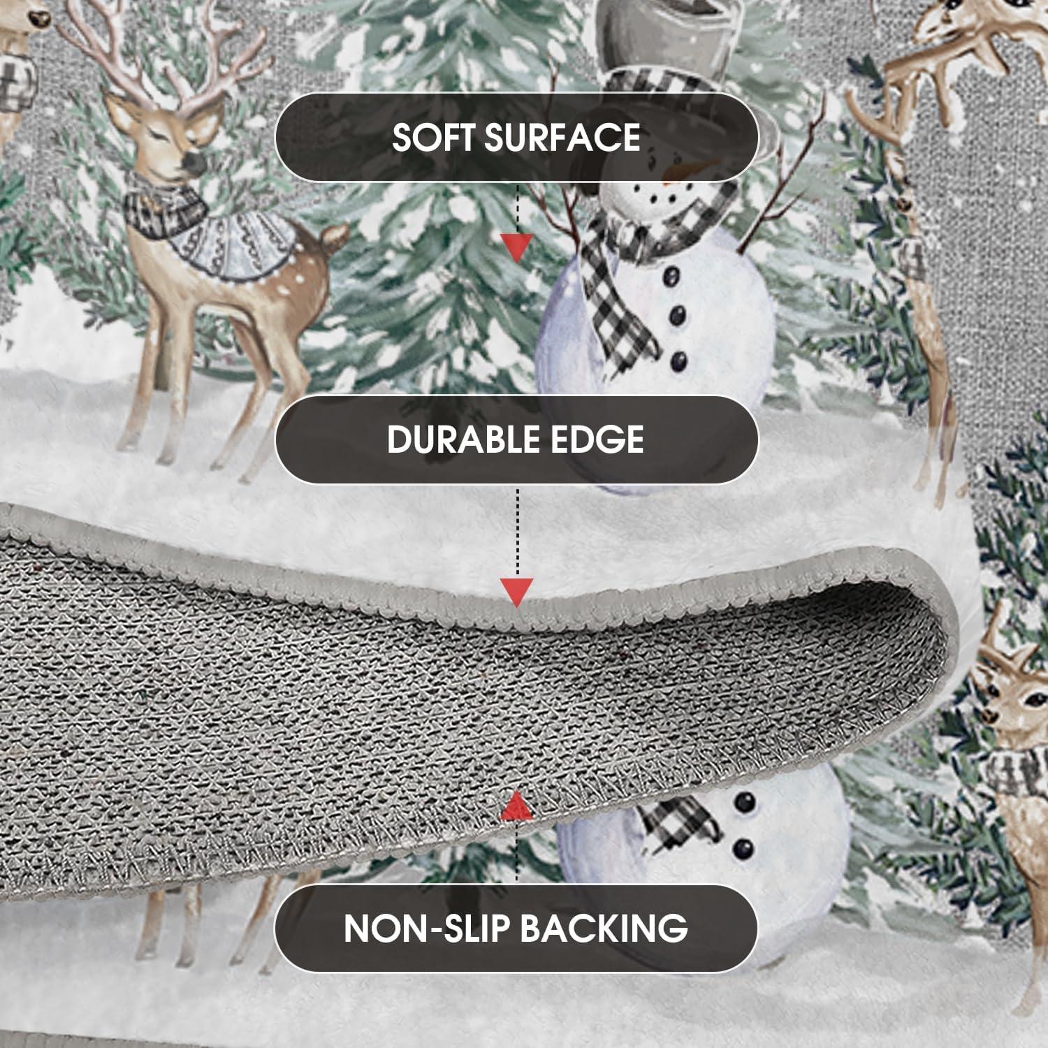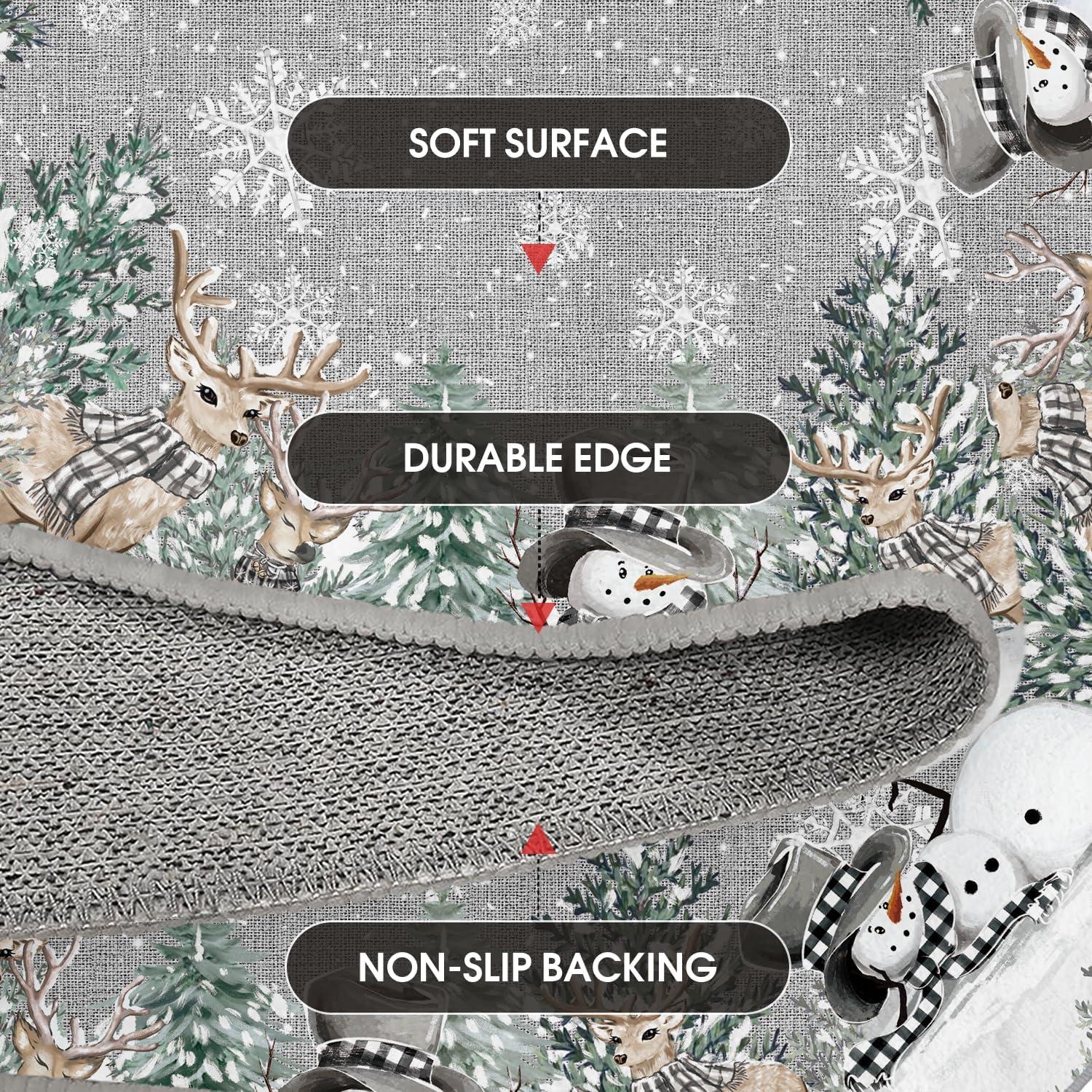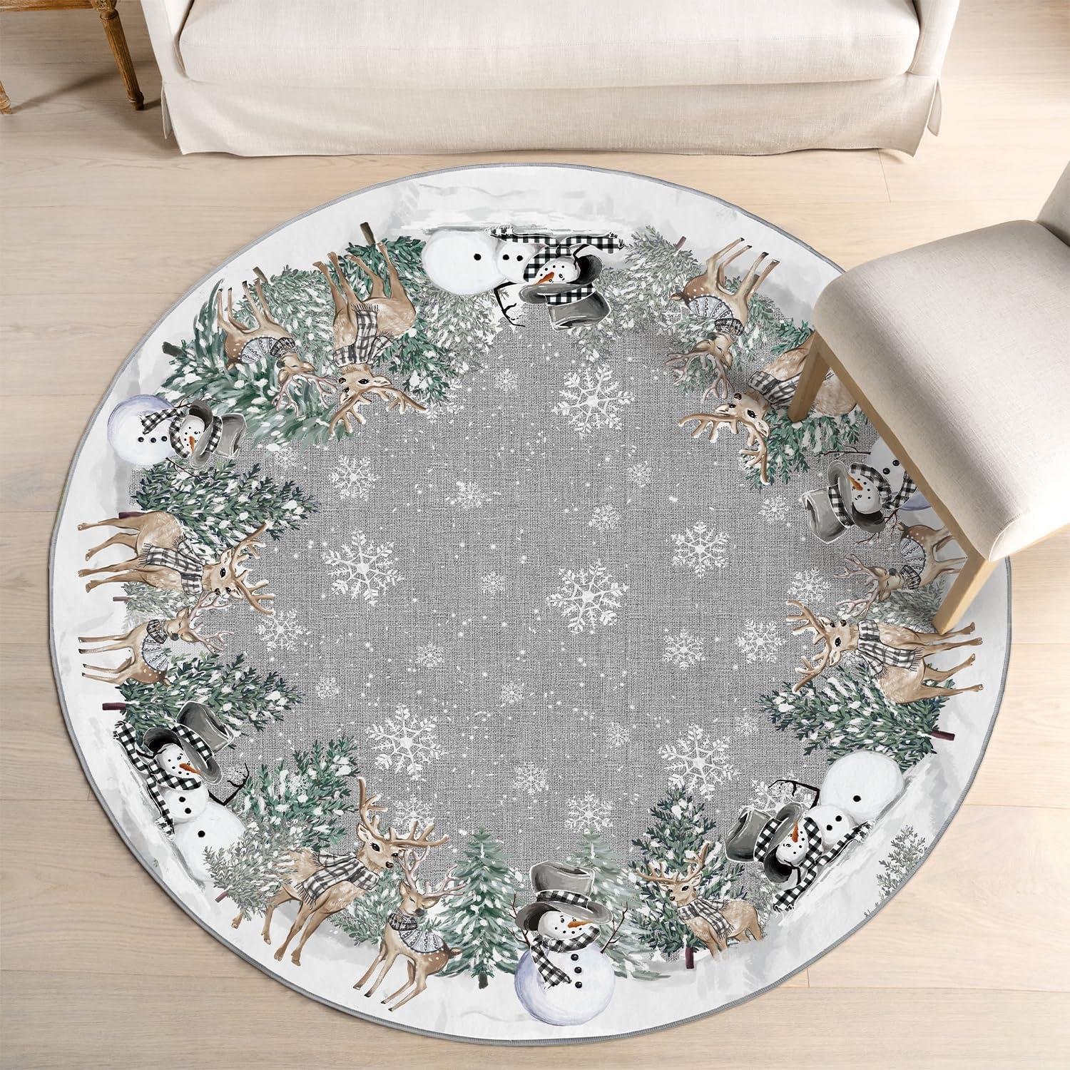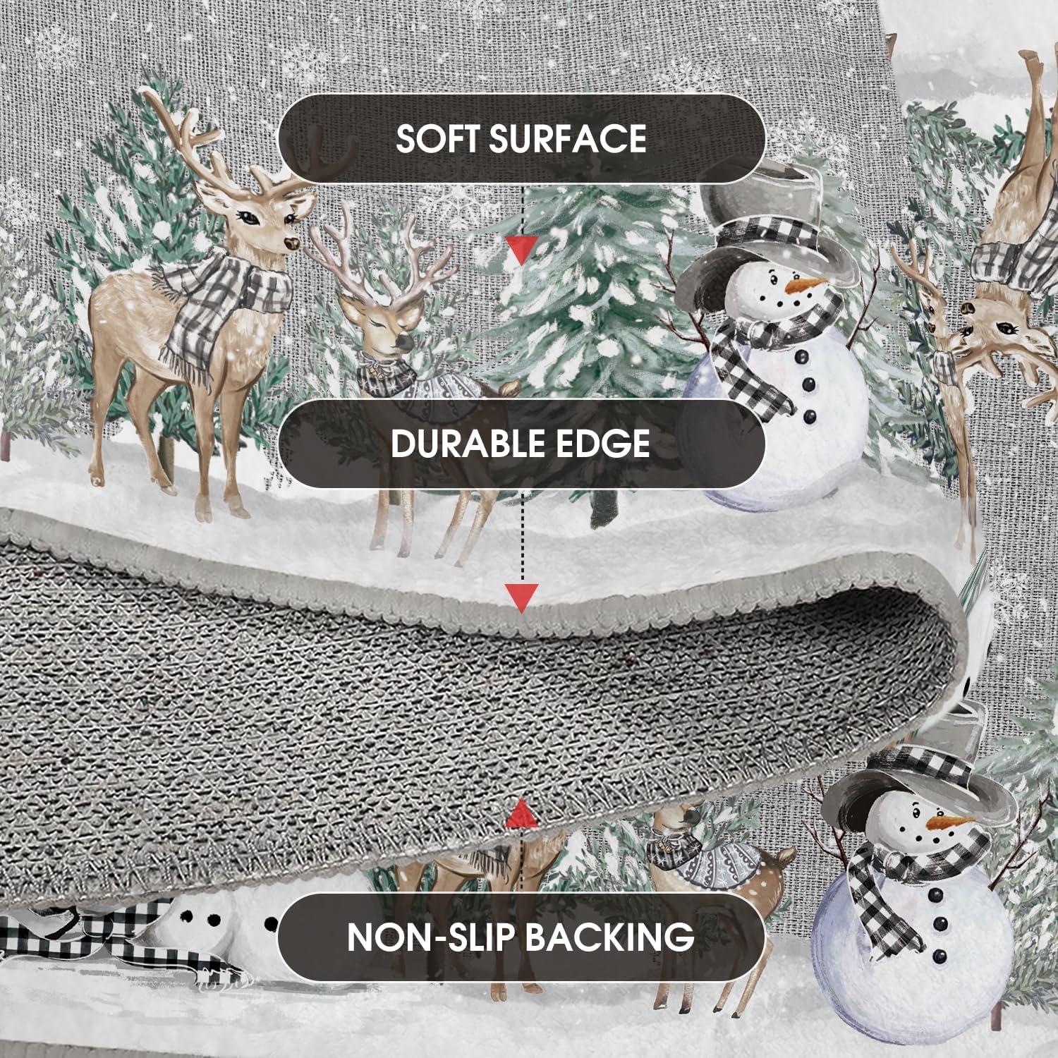 Artoid Mode Grey Snowman Deer Tree Christmas Area Rug, Winter Home Decor Low-Profile Washable Area Rugs for Entryway Bedroom Living Room Laundry Room Indoor 5×7 Feet(Grey Snowman)