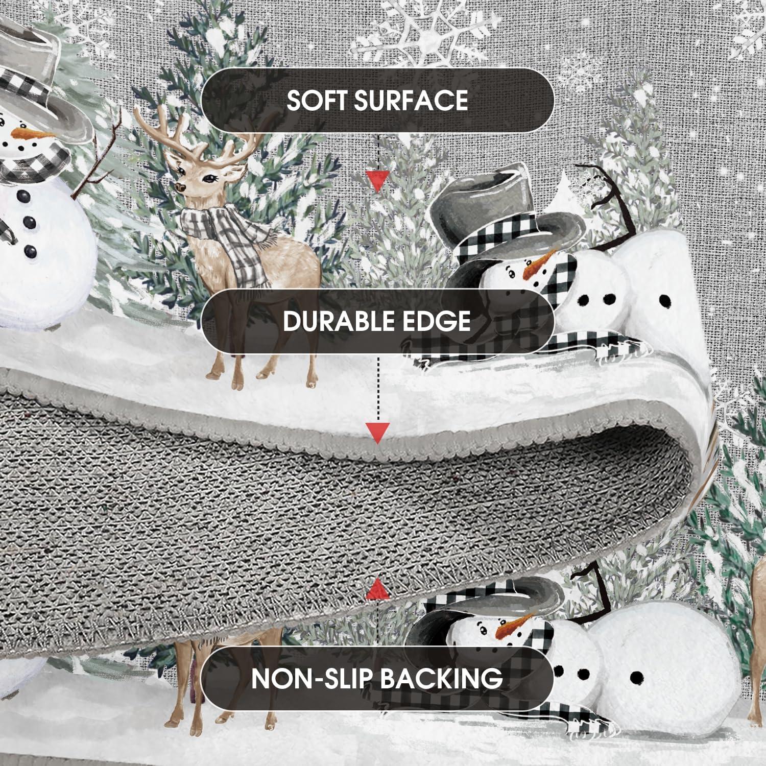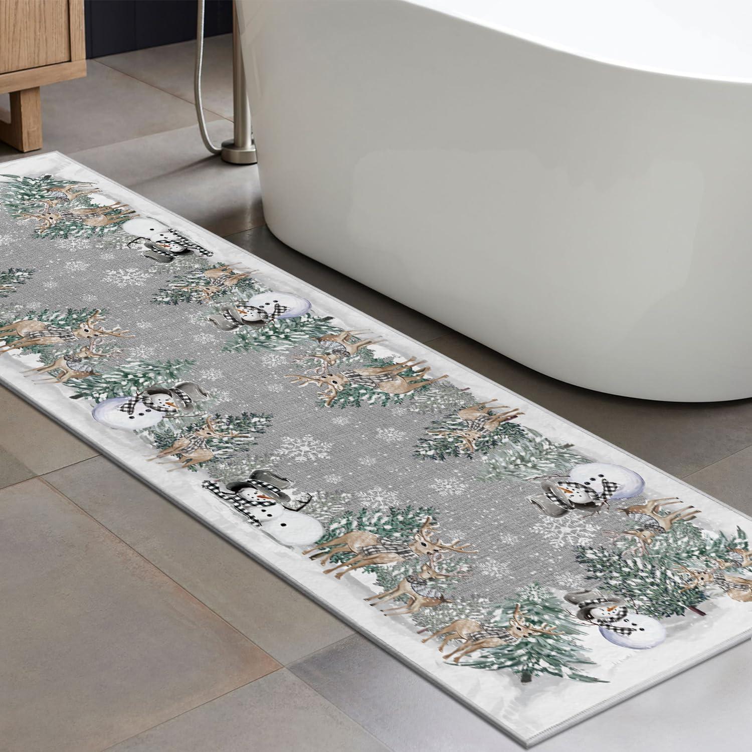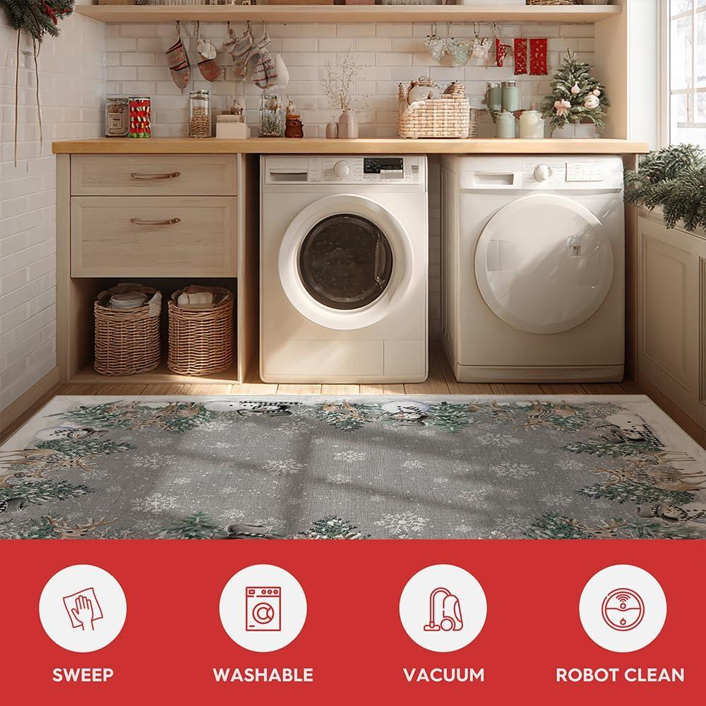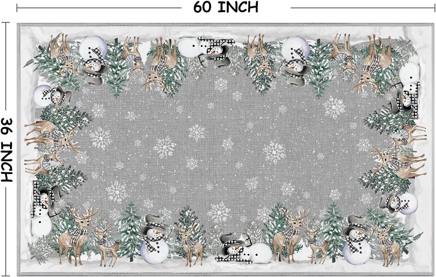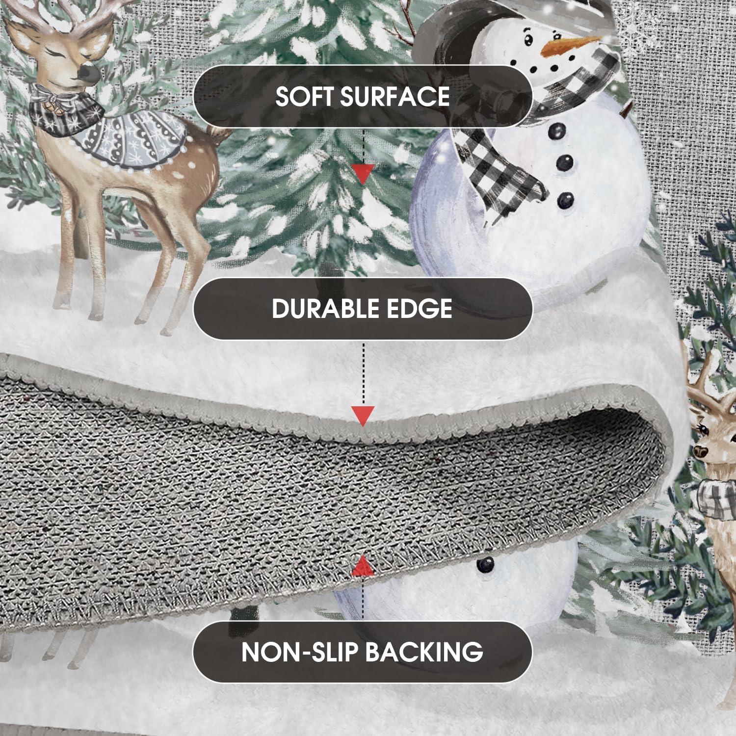 Artoid Mode Grey Snowman Deer Tree Christmas Area Rug, Winter Home Decor Low-Profile Washable Area Rugs for Entryway Bedroom Living Room Laundry Room Indoor 5×7 Feet(Grey Snowman)