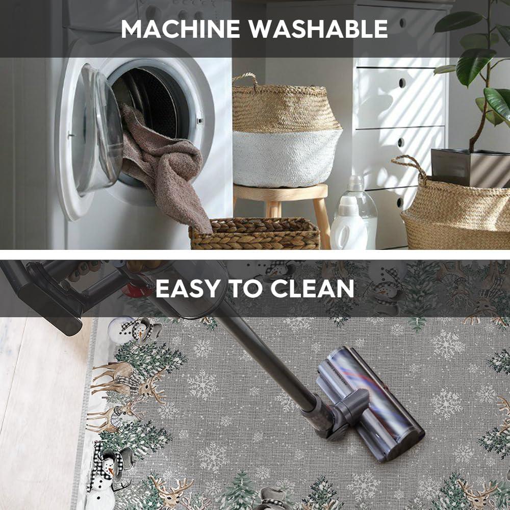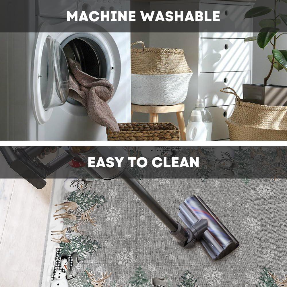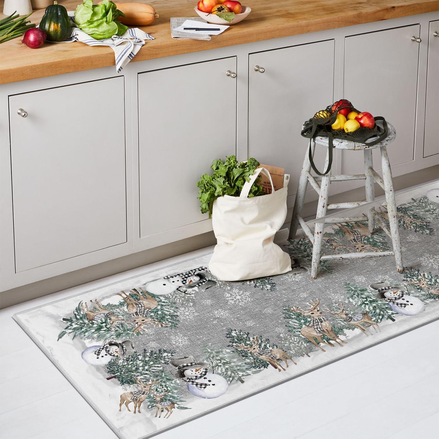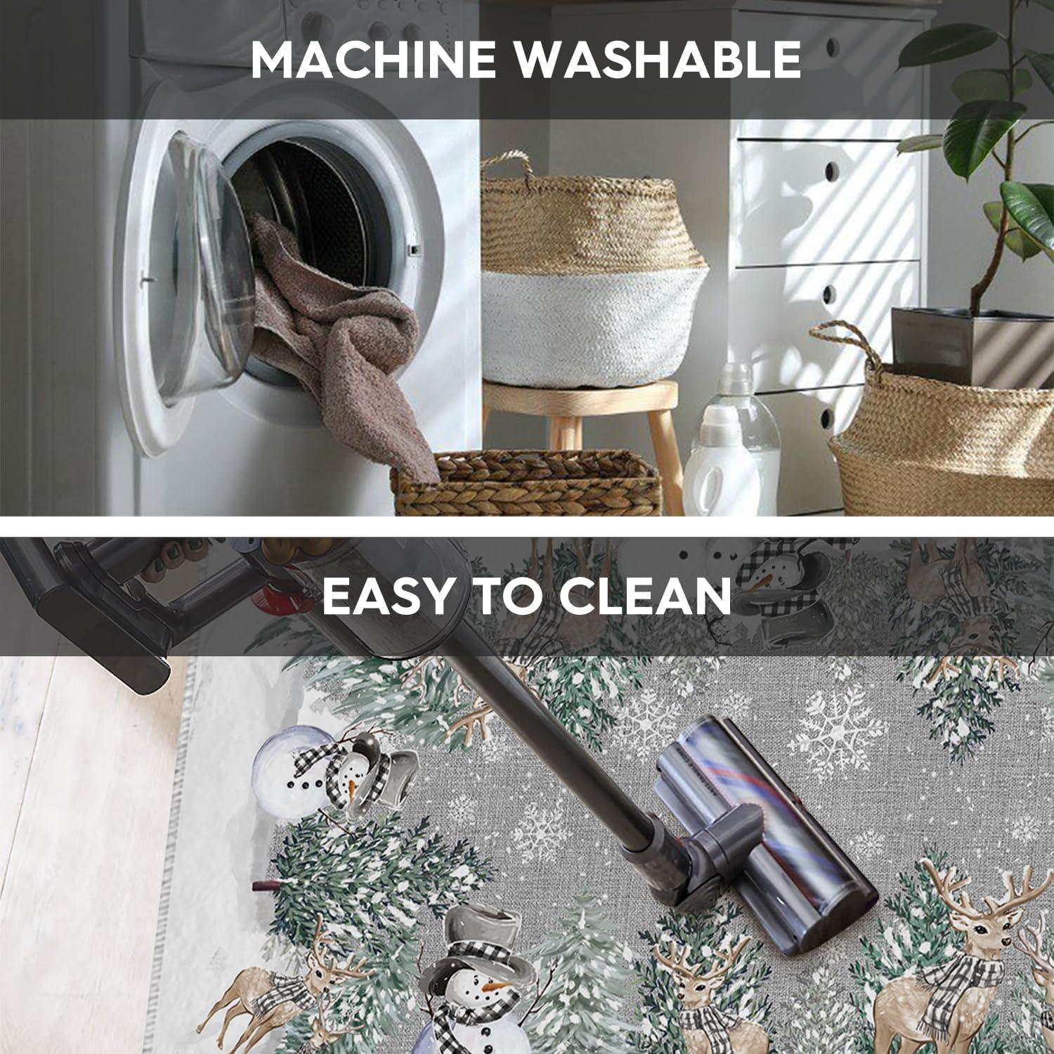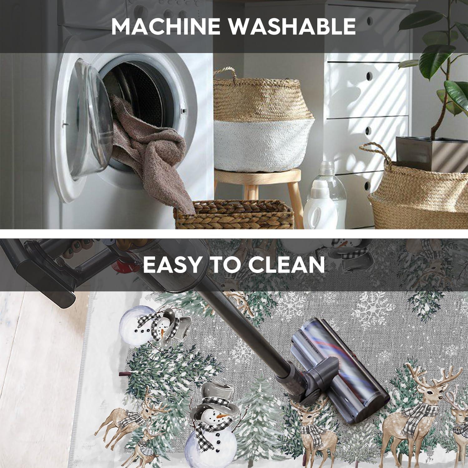 Artoid Mode Grey Snowman Deer Tree Christmas Area Rug, Winter Home Decor Low-Profile Washable Area Rugs for Entryway Bedroom Living Room Laundry Room Indoor 5×7 Feet(Grey Snowman)
