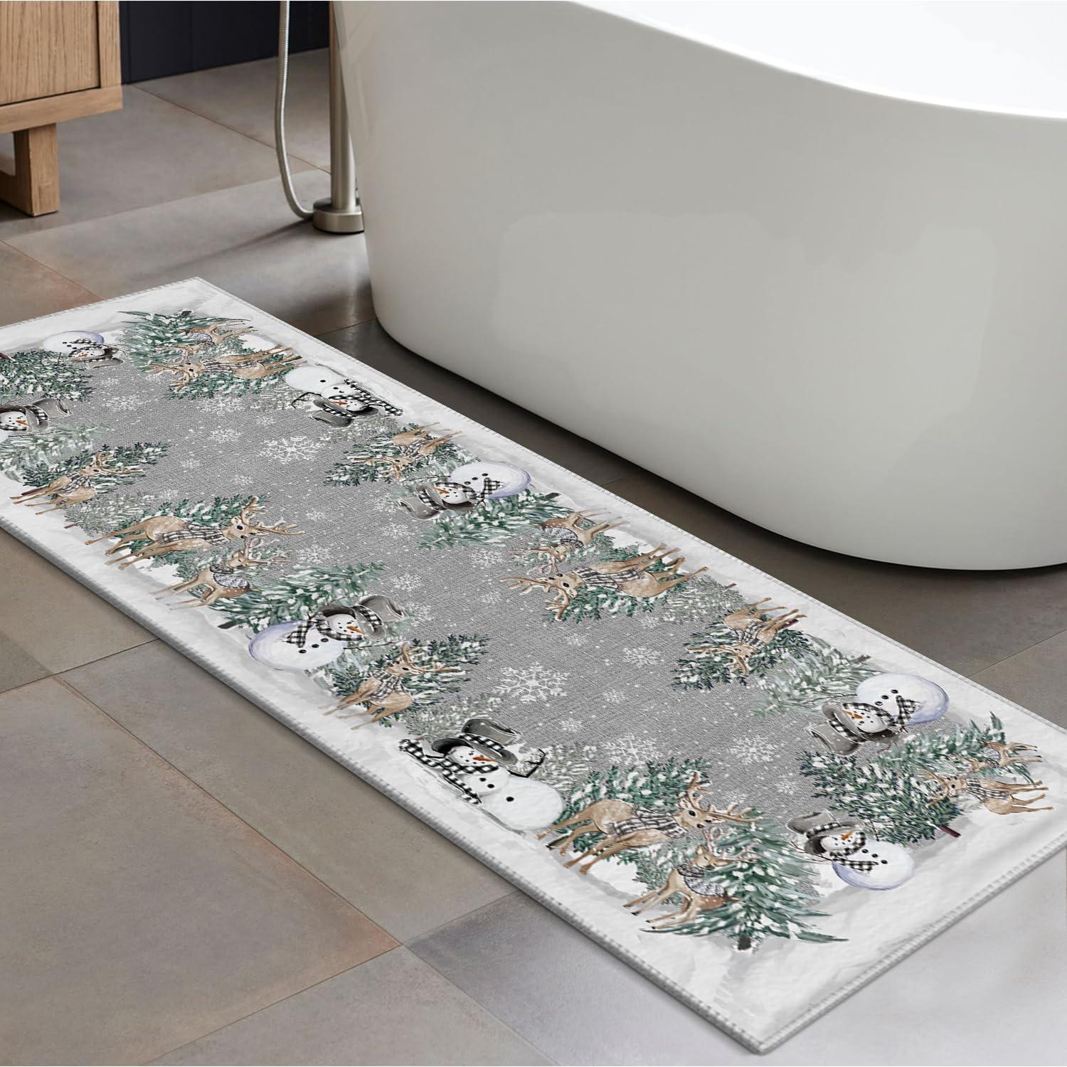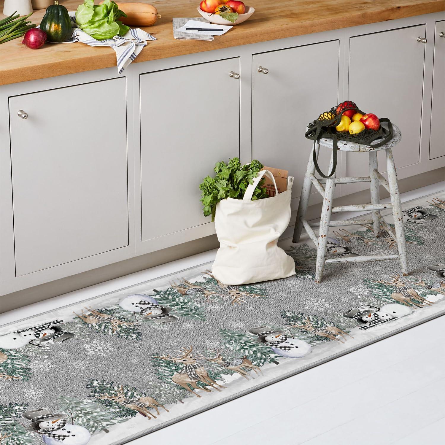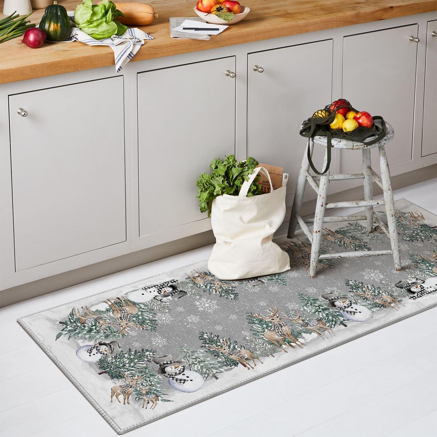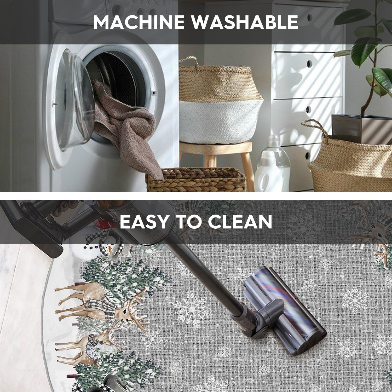 Artoid Mode Grey Snowman Deer Tree Christmas Area Rug, Winter Home Decor Low-Profile Washable Area Rugs for Entryway Bedroom Living Room Laundry Room Indoor 5×7 Feet(Grey Snowman)