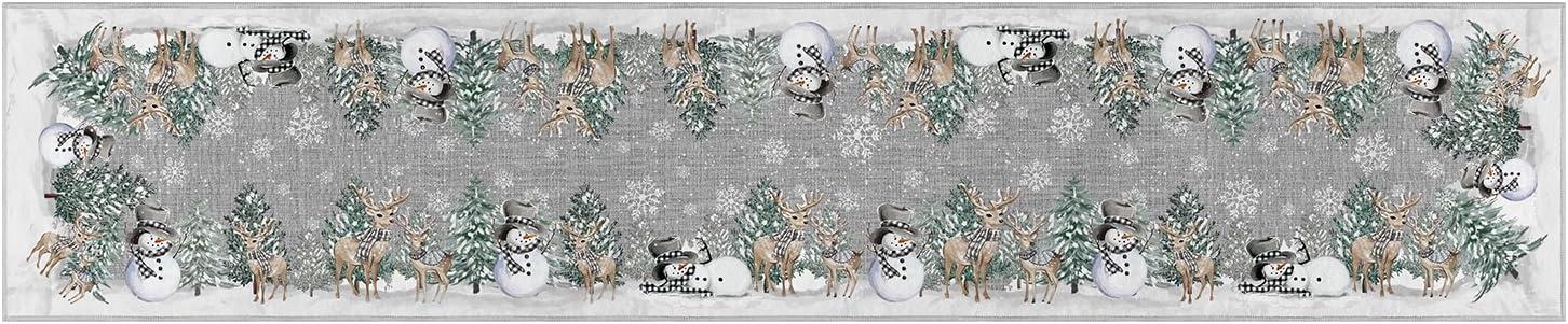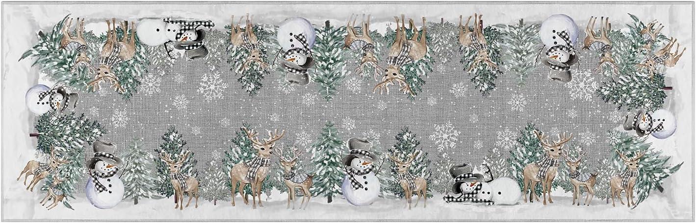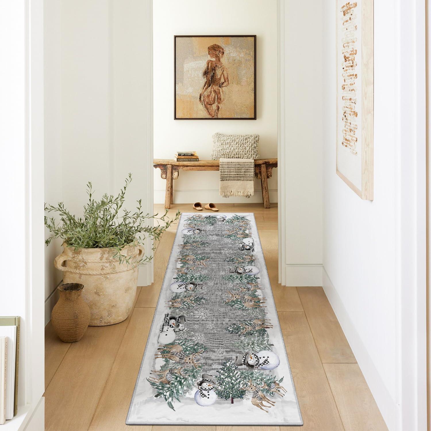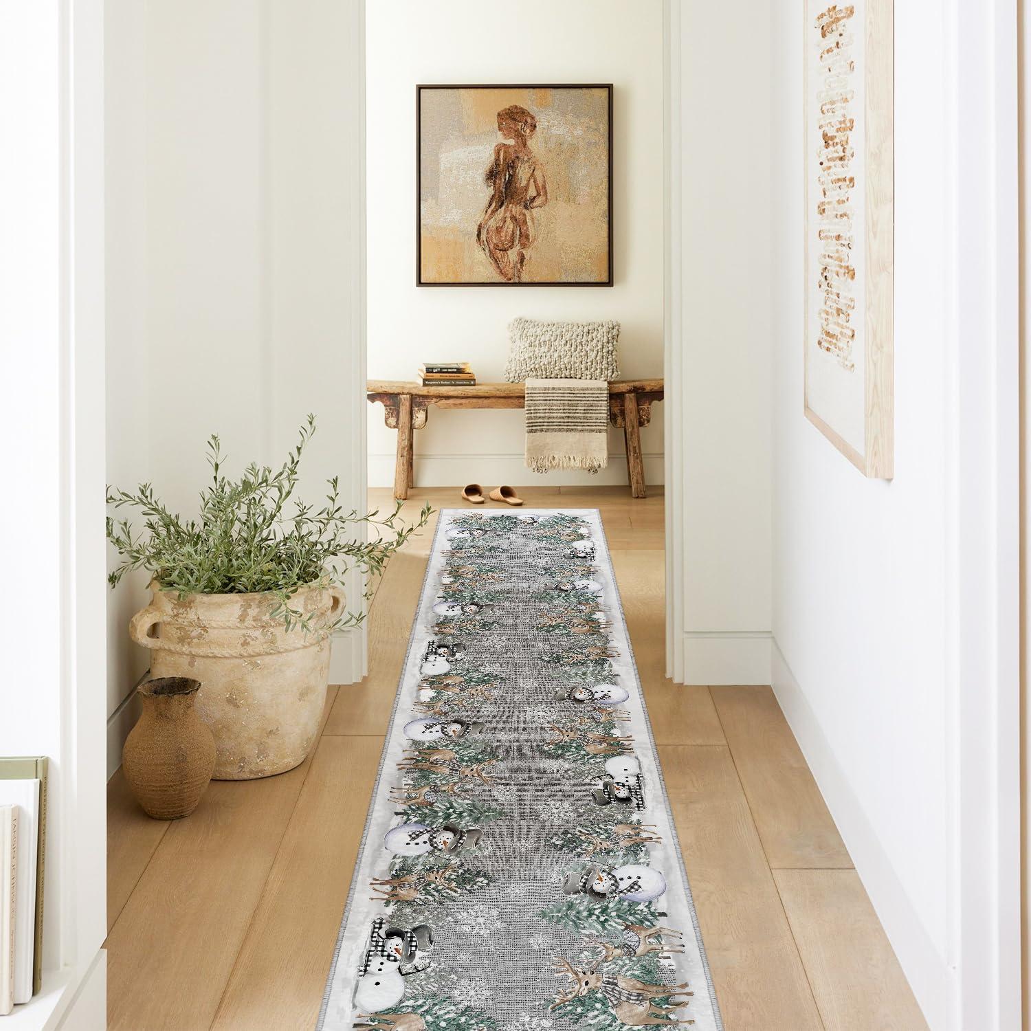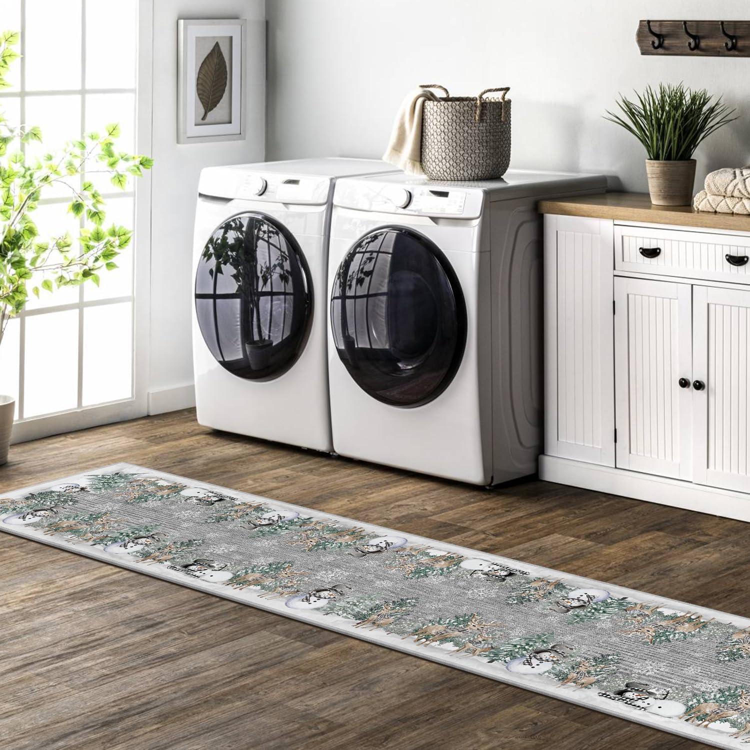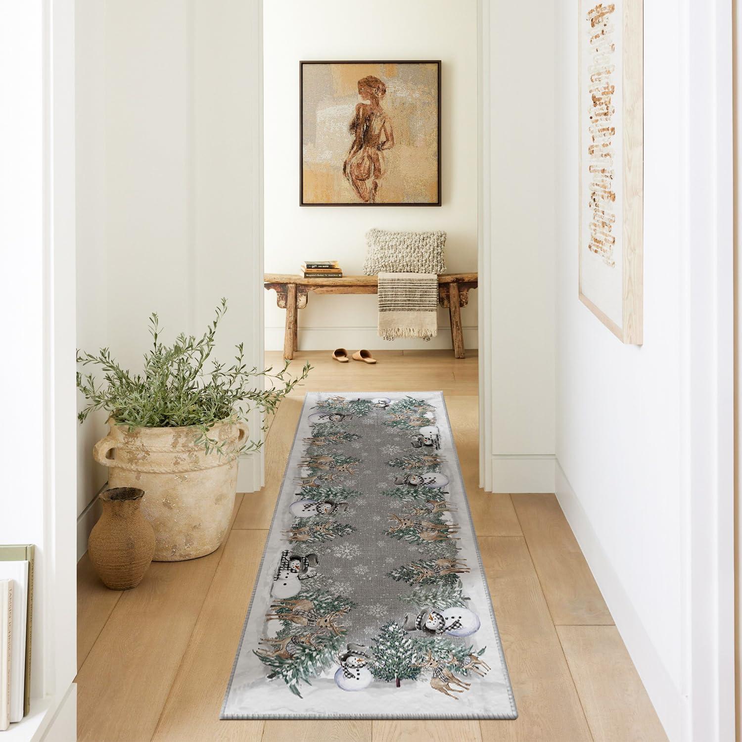 Artoid Mode Grey Snowman Deer Tree Christmas Area Rug, Winter Home Decor Low-Profile Washable Area Rugs for Entryway Bedroom Living Room Laundry Room Indoor 5×7 Feet(Grey Snowman)