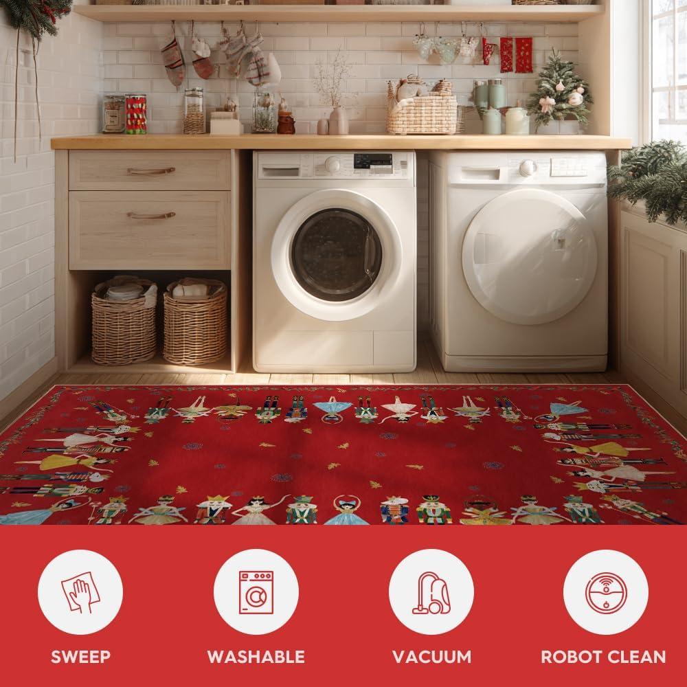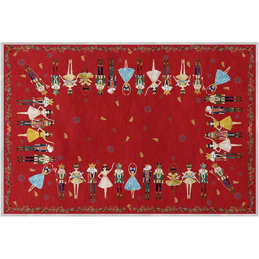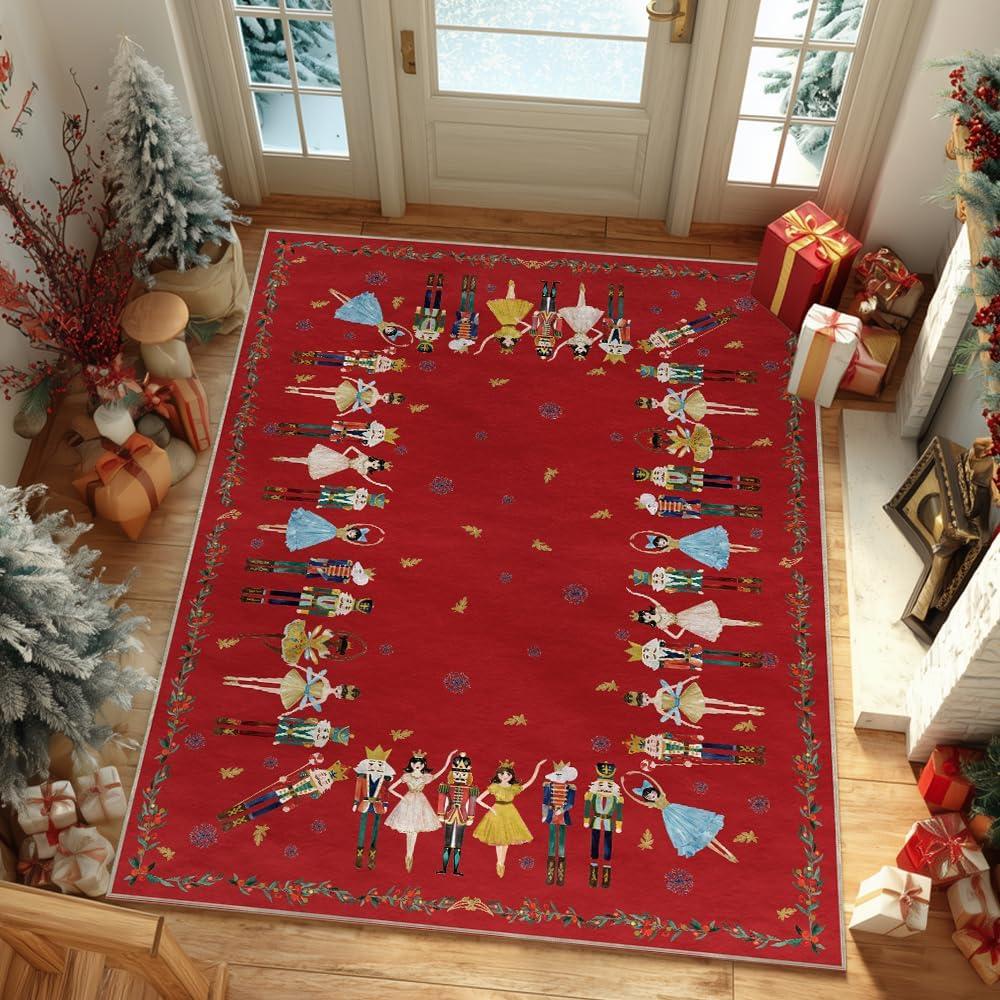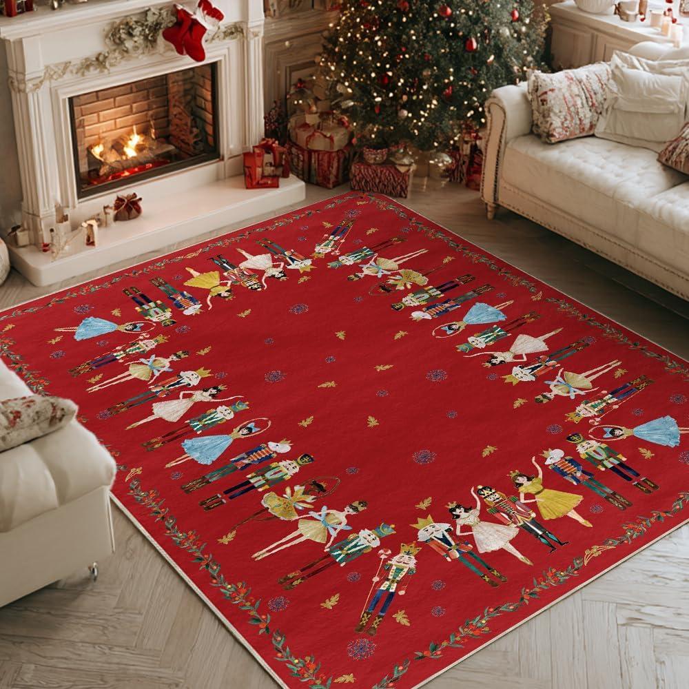 Artoid Mode Grey Snowman Deer Tree Christmas Area Rug, Winter Home Decor Low-Profile Washable Area Rugs for Entryway Bedroom Living Room Laundry Room Indoor 5×7 Feet(Red)