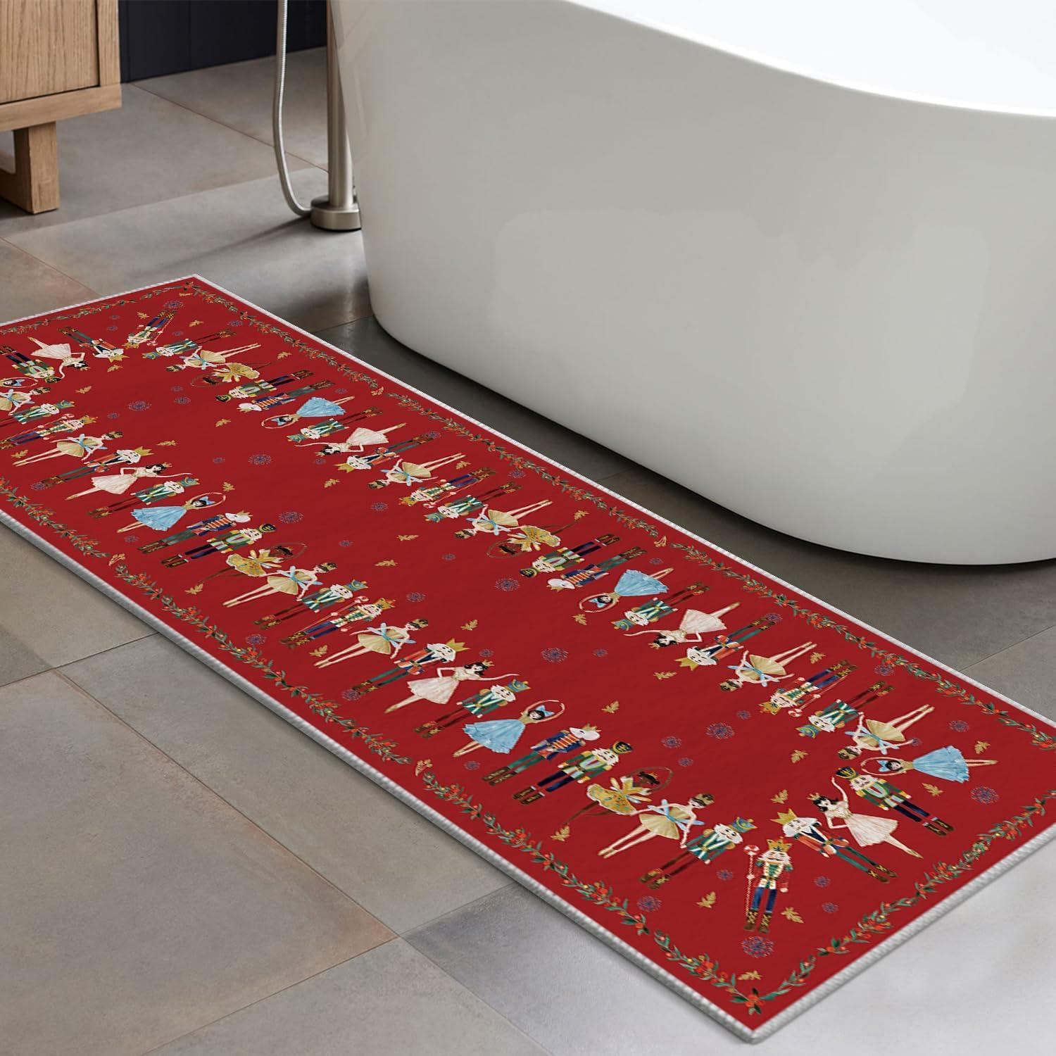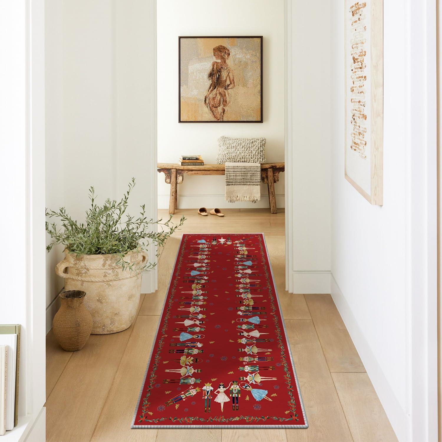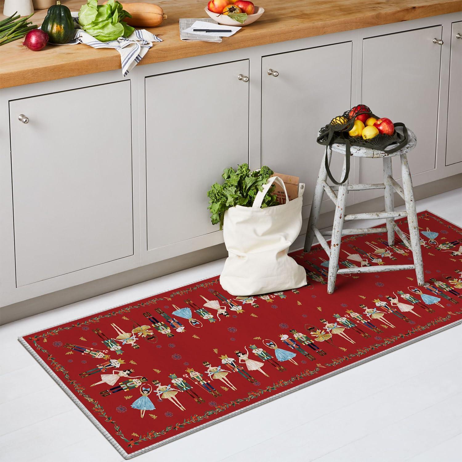 Artoid Mode Grey Snowman Deer Tree Christmas Area Rug, Winter Home Decor Low-Profile Washable Area Rugs for Entryway Bedroom Living Room Laundry Room Indoor 5×7 Feet(Red)