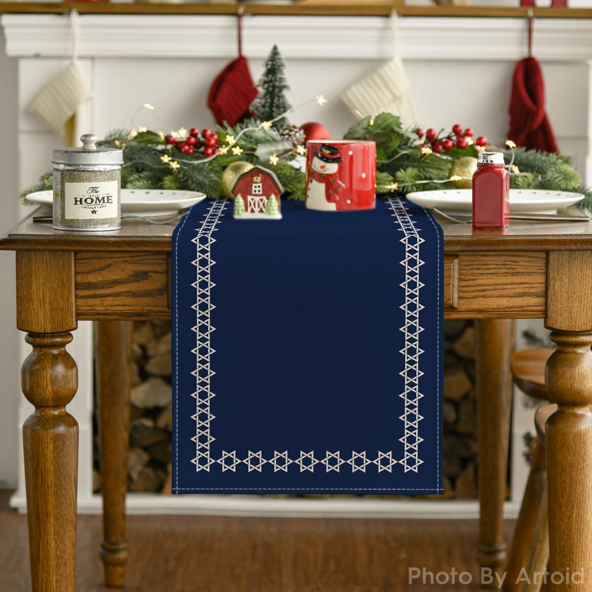 Artoid Mode Hexagram Hanukkah Table Runner, Star of David Jewish Chanukah Holiday Kitchen Dining Table Decoration for Home Party Decor 13×72 Inch