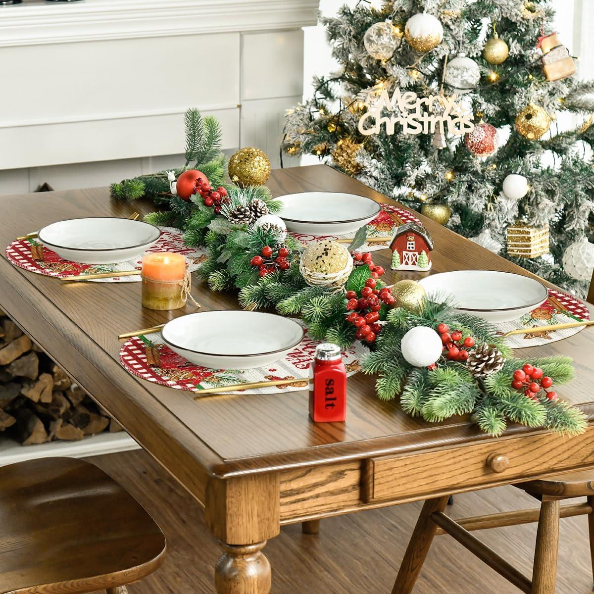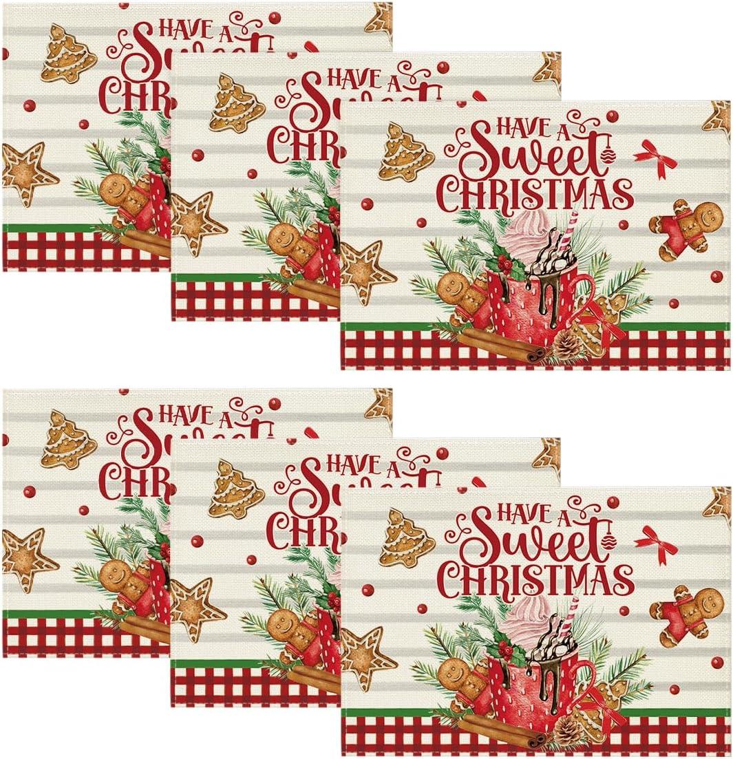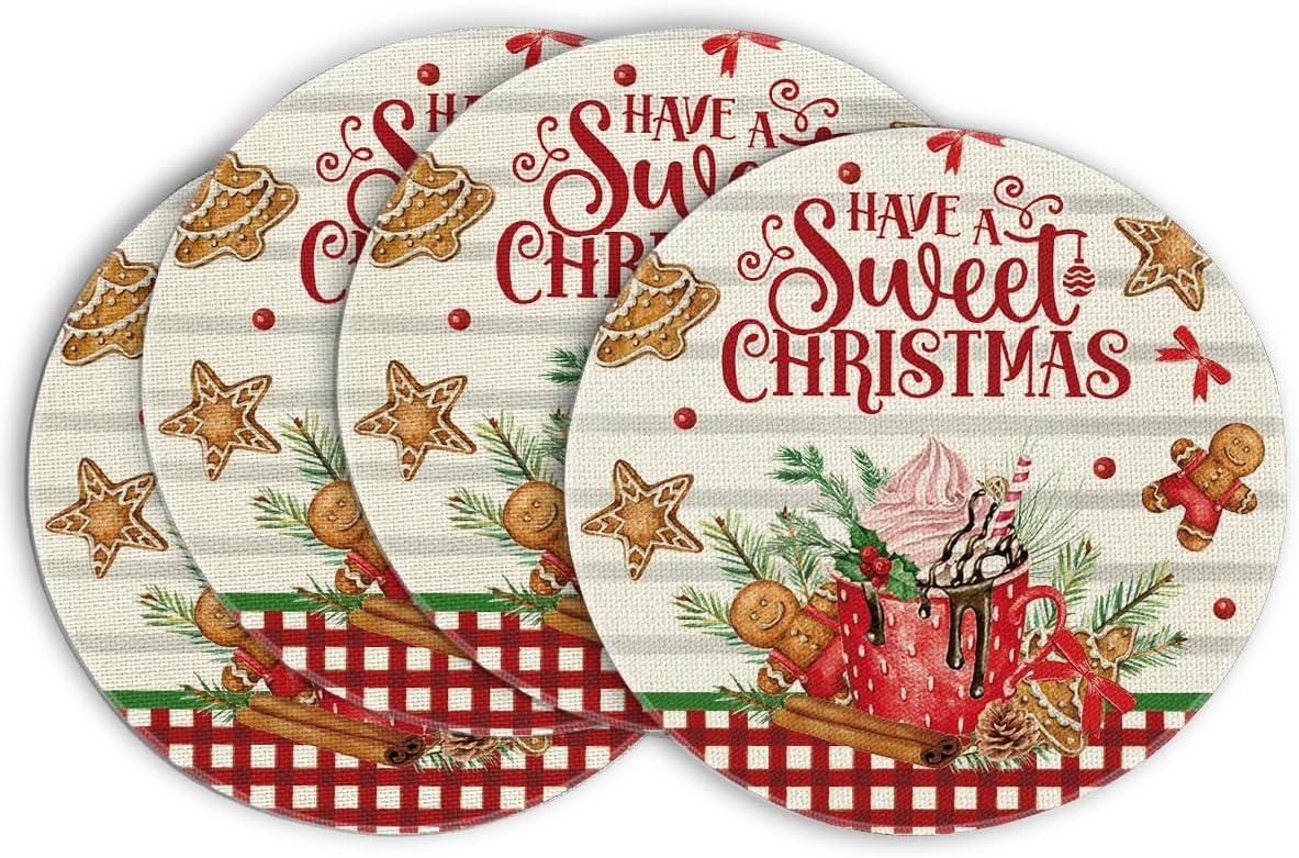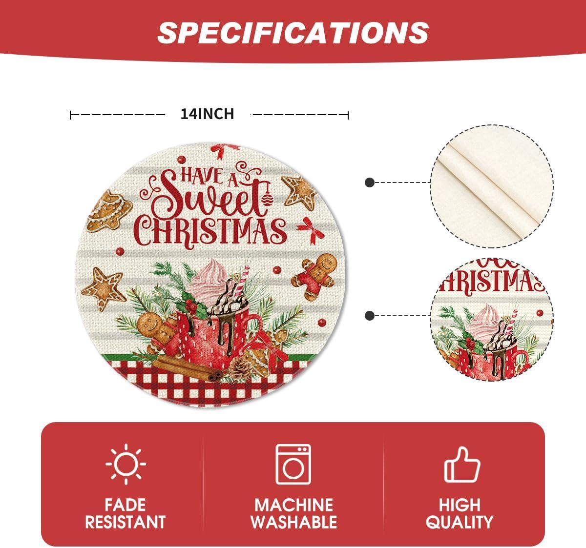 Artoid Mode Holly Gingerbread Ice Cream Merry Christmas Round Placemats Set of 4, 14 Inch Winter Round Table Mats for Dining Decoration(Beige)