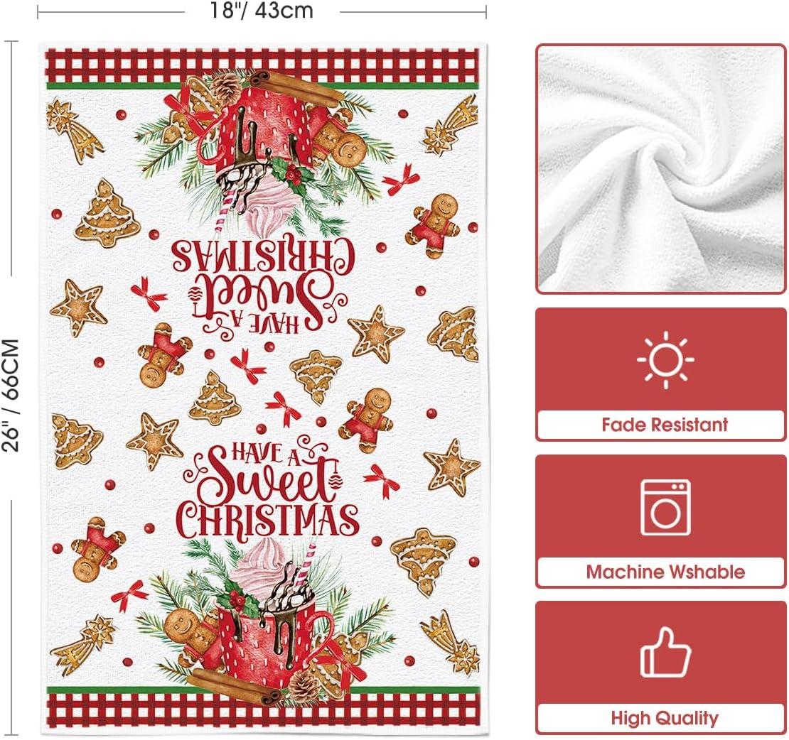 Artoid Mode Hot Coco Xmas Gingerbread Have A Sweet Christmas Kitchen Towels Dish Towels, 18×26 Inch Daily Seasonal Winter Decoration Hand Towels Set of 2