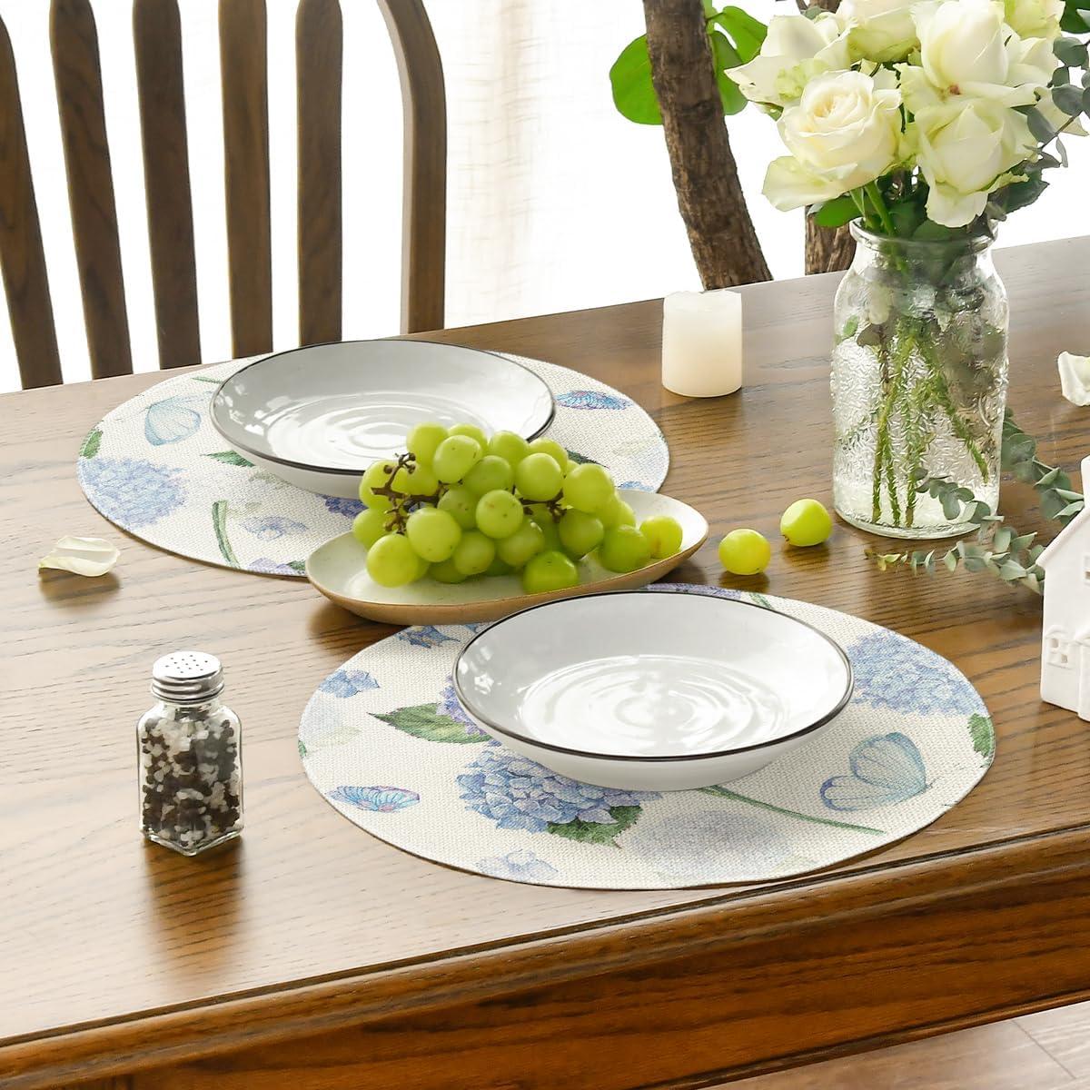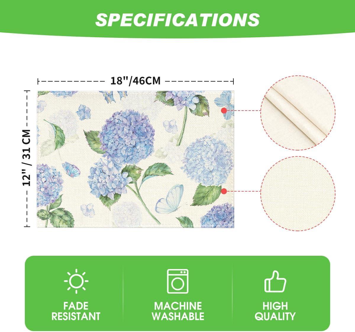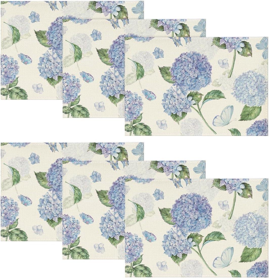 Artoid Mode Hydrangea Butterfly Spring Placemats Set of 4, 12×18 Inch Seasonal Summer Holiday Table Mats for Party Kitchen Dining Decoration(Beige)