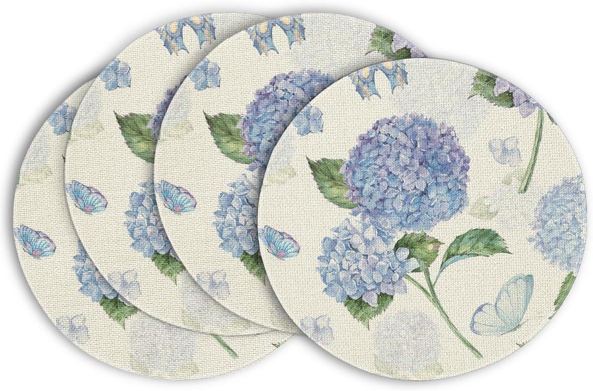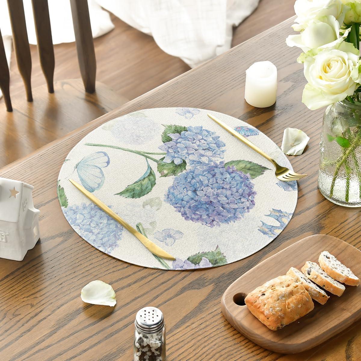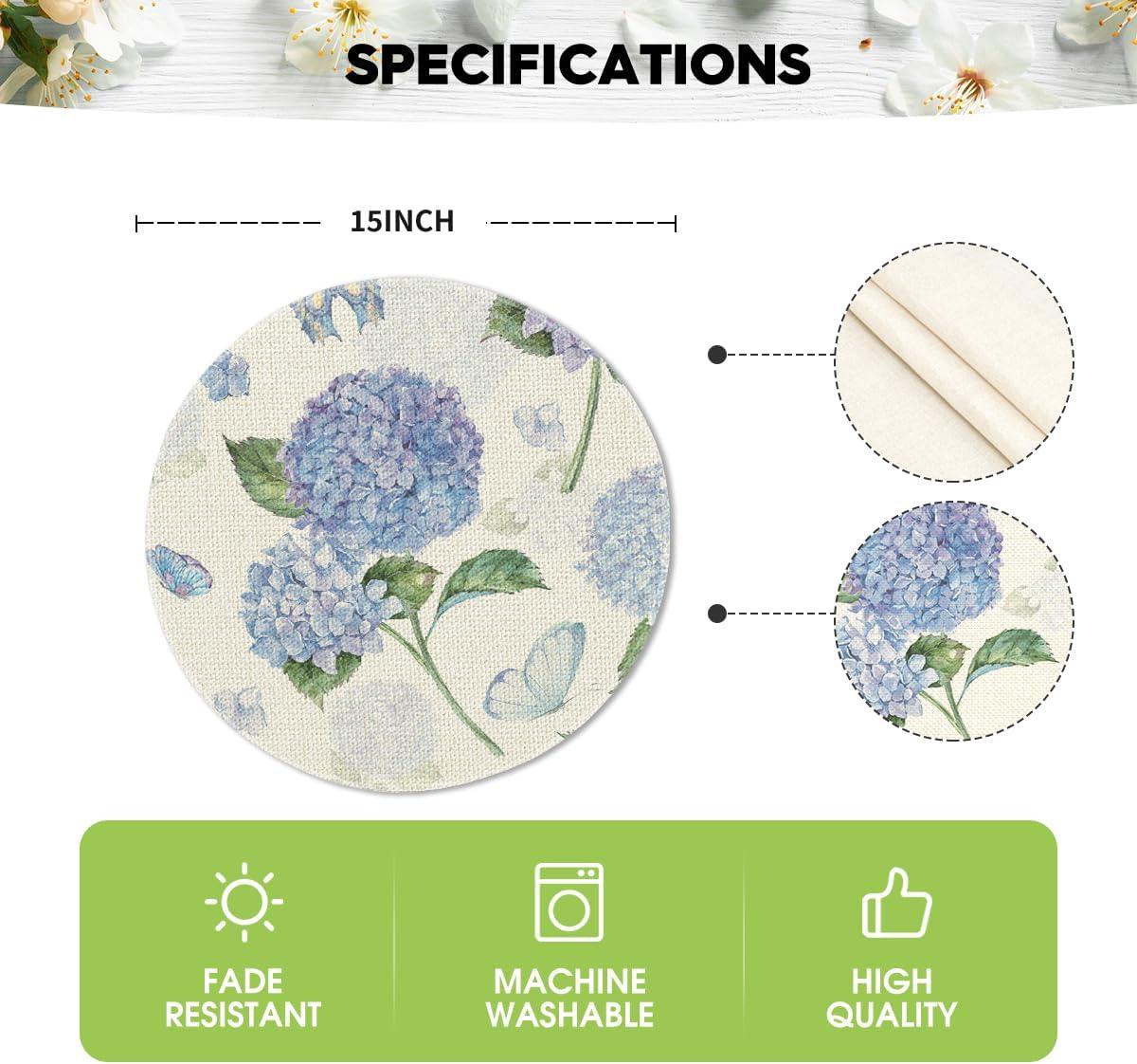 Artoid Mode Hydrangea Butterfly Spring Placemats Set of 4, 12×18 Inch Seasonal Summer Holiday Table Mats for Party Kitchen Dining Decoration(Beige)