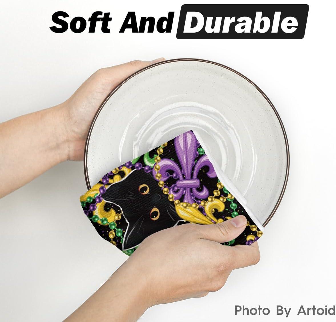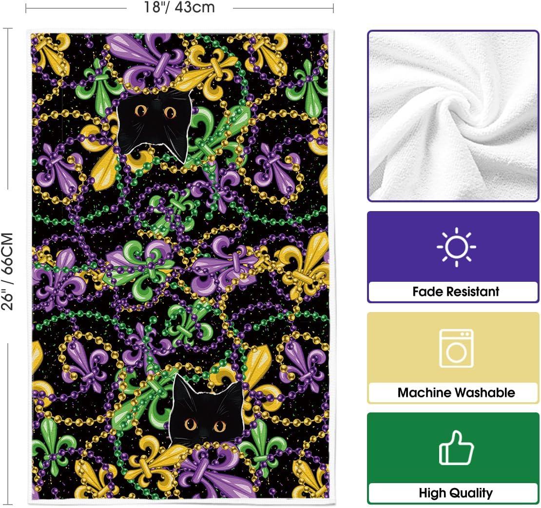 Artoid Mode Iris Jewelry Cat Mardi Gras Kitchen Towels Dish Towels, 18×26 Inch Farmhouse Decoration Hand Towels Set of 2